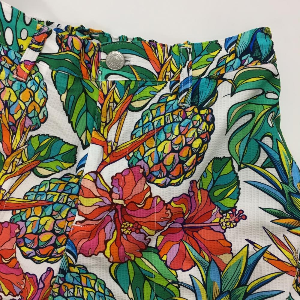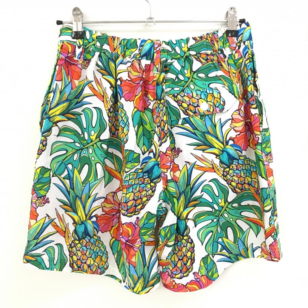 【超美品】ラウドマウス ハーフパンツ 白×グリーン×レッド 花柄 リーフ柄 パイナップル柄 メンズ M ゴルフウェア LOUDMOUTH