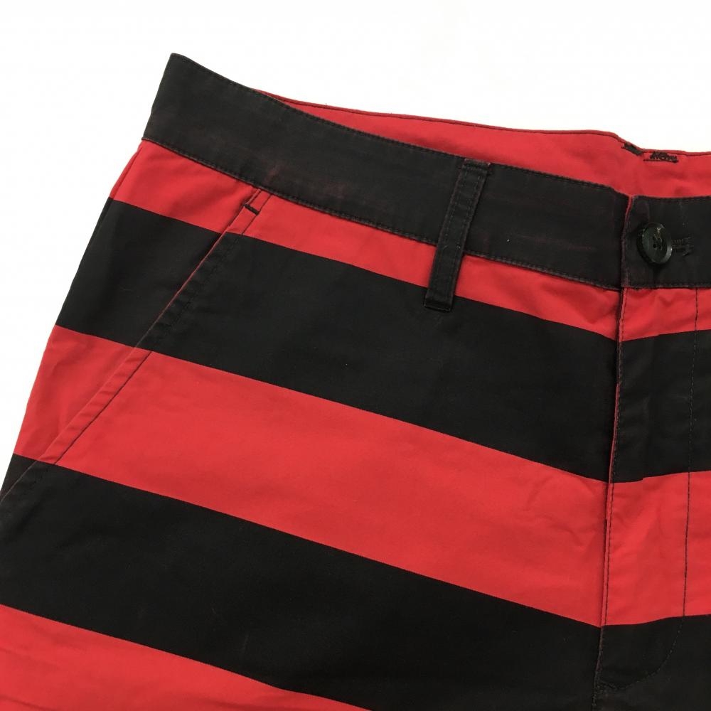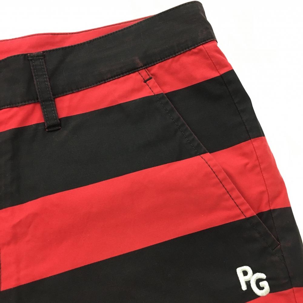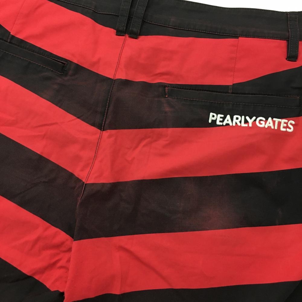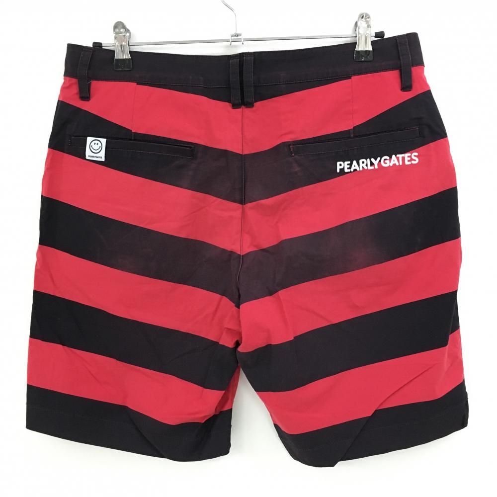 パーリーゲイツ ハーフパンツ レッド×黒 太ボーダー ニコちゃん スマイル メンズ 5(L) ゴルフウェア PEARLY GATES