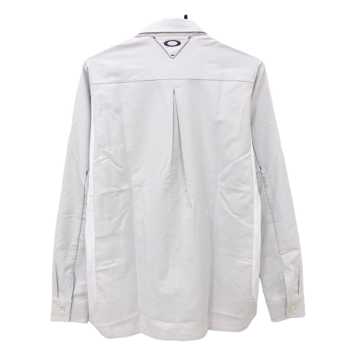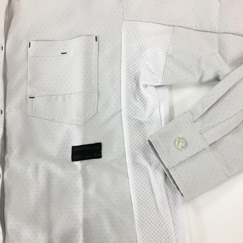 【未使用品】オークリー 長袖シャツ ライトグレー×白 ドット地模様 サイドメッシュ切替 メンズ M ゴルフウェア Oakley