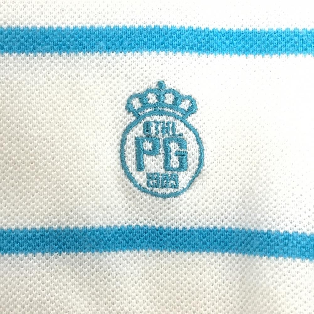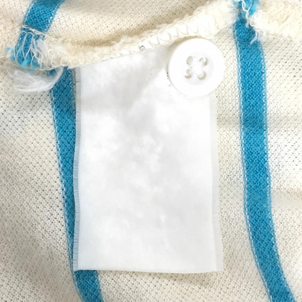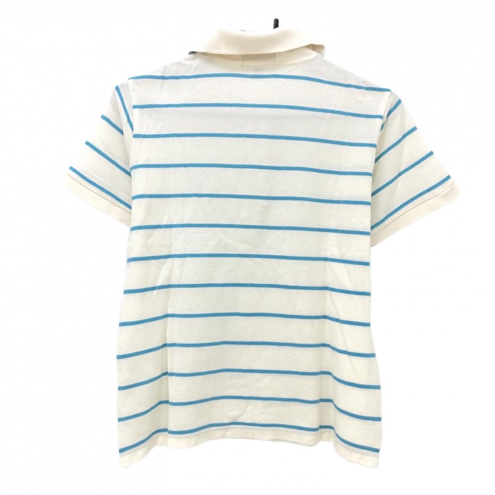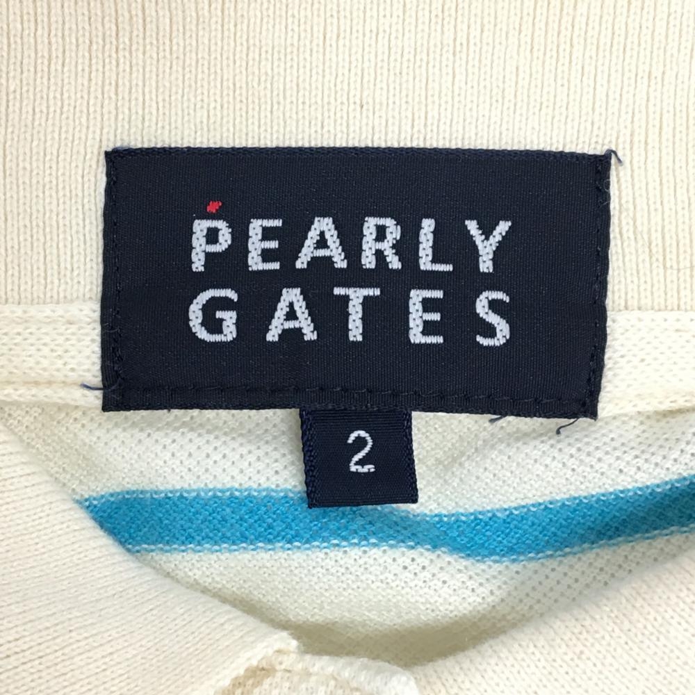 【美品】パーリーゲイツ 半袖ポロシャツ ライトベージュ×ライトブルー ボーダー レディース 2(L) ゴルフウェア PEARLY GATES