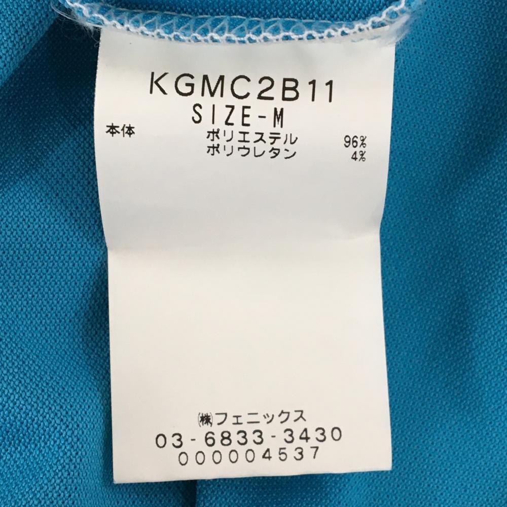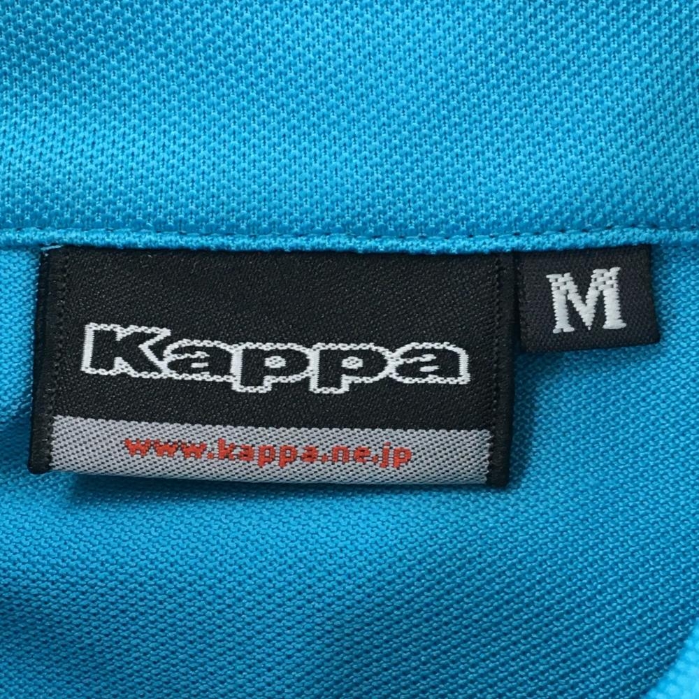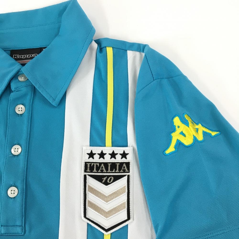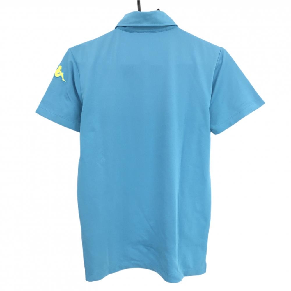 【超美品】カッパ 半袖ポロシャツ ライトブルー×白 イエローライン 胸元ワッペン レディース M ゴルフウェア Kappa