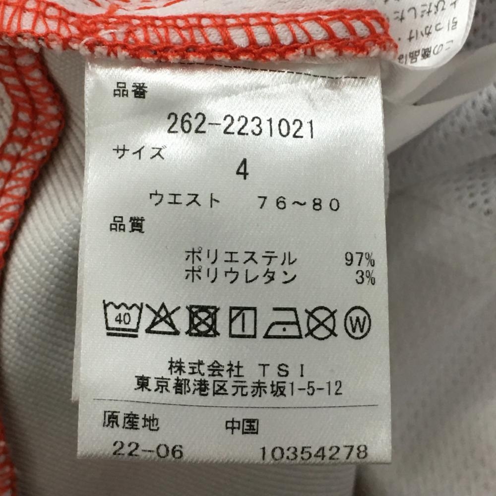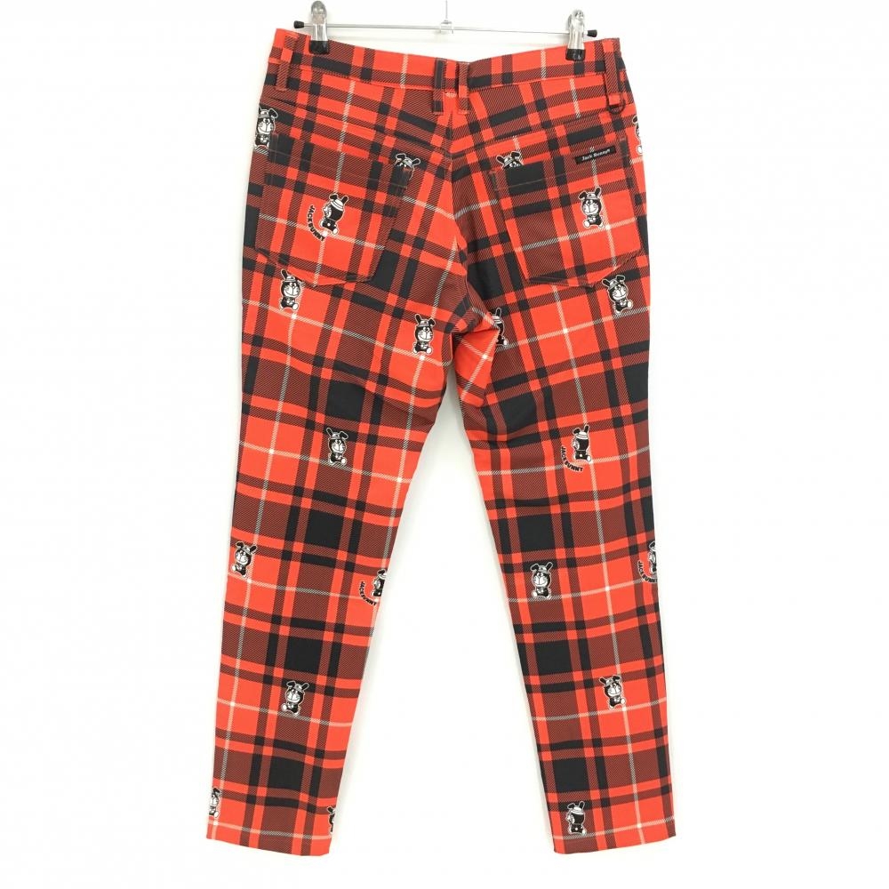 【超美品】ジャックバニー×ドラえもん パンツ レッドオレンジ系×ネイビー チェック ドラえもん総柄 メンズ 4(M) ゴルフウェア Jack Bunny