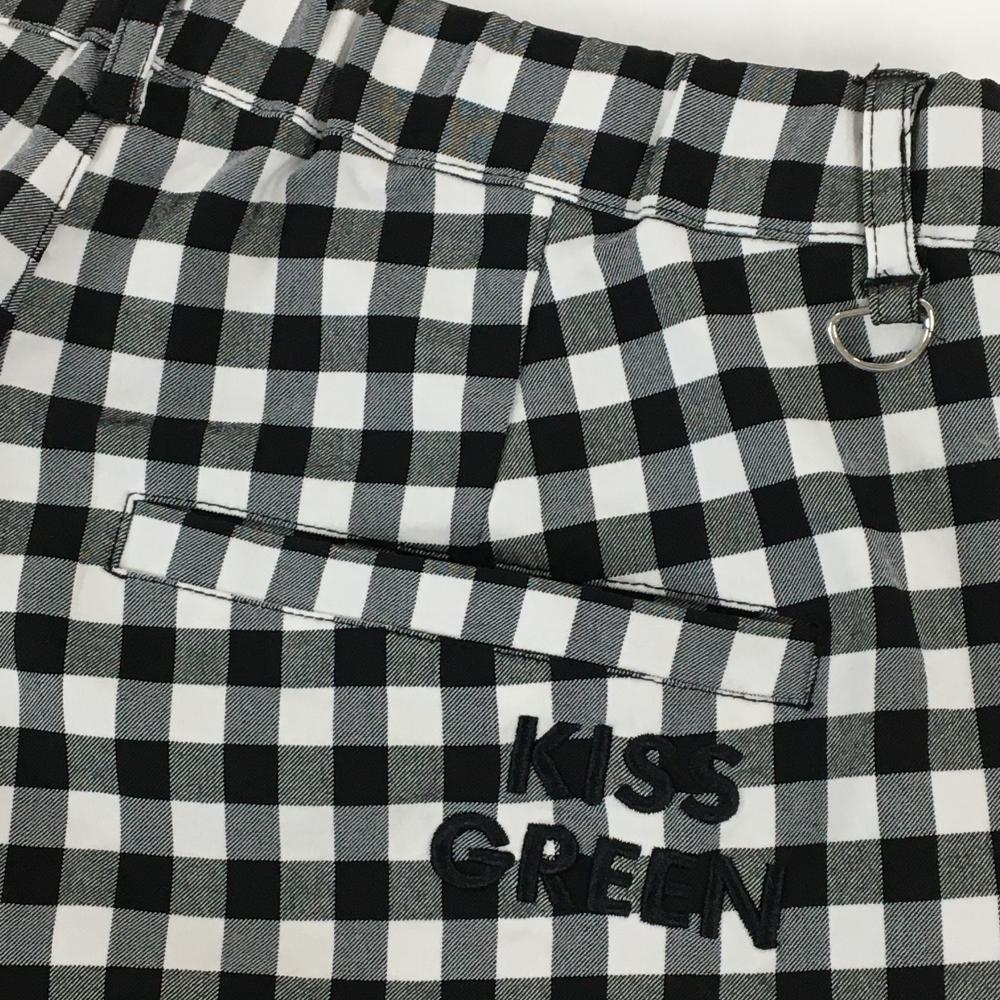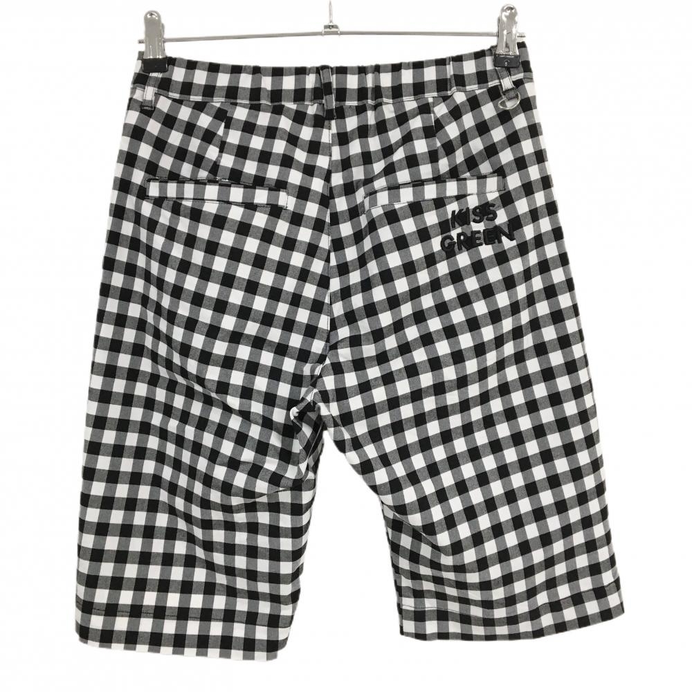 【超美品】キスオンザグリーン ハーフパンツ 白×黒 チェック柄 バックロゴ刺しゅう レディース 2(M) ゴルフウェア kiss on the green