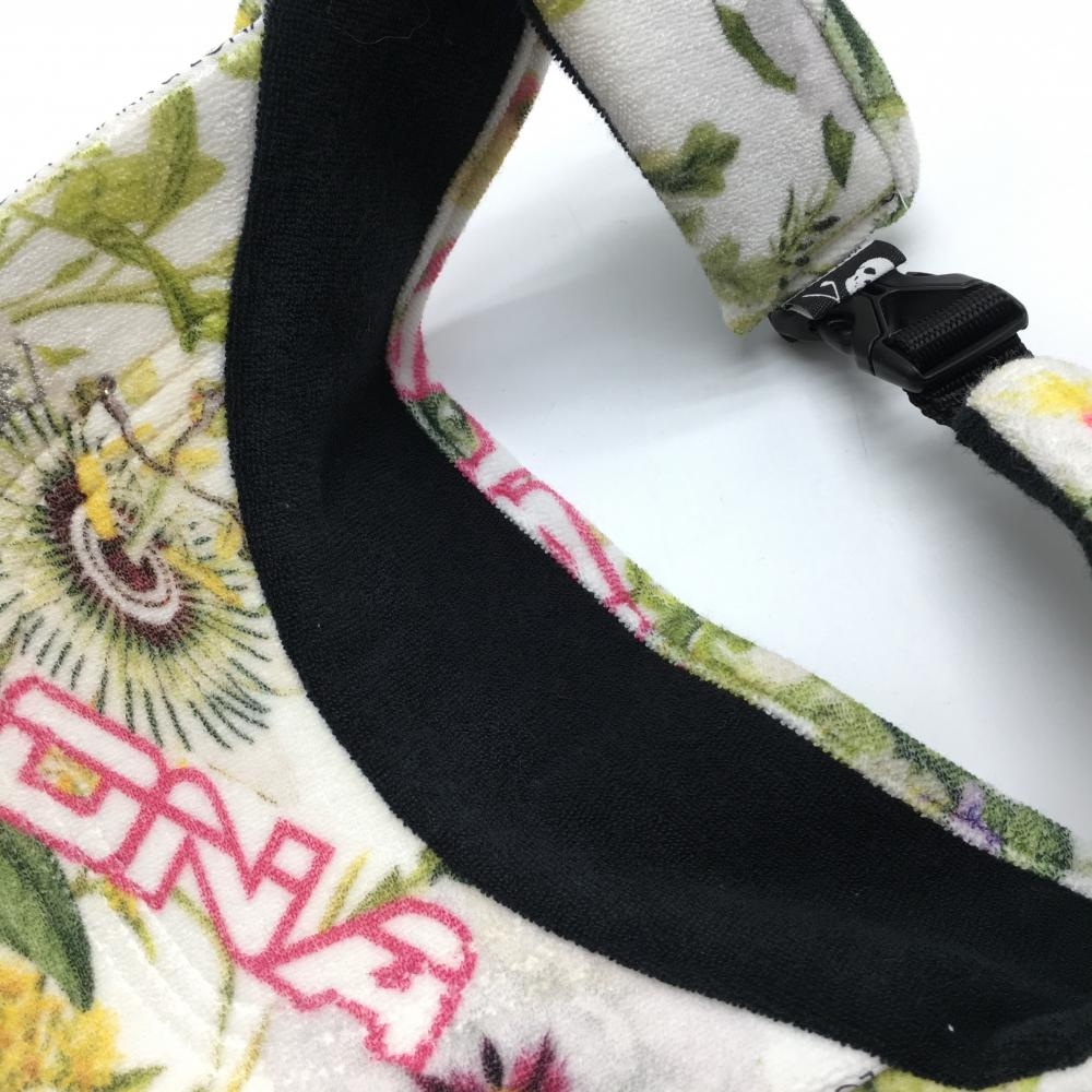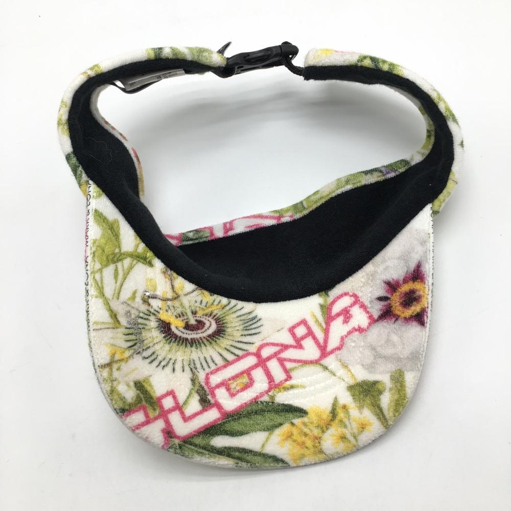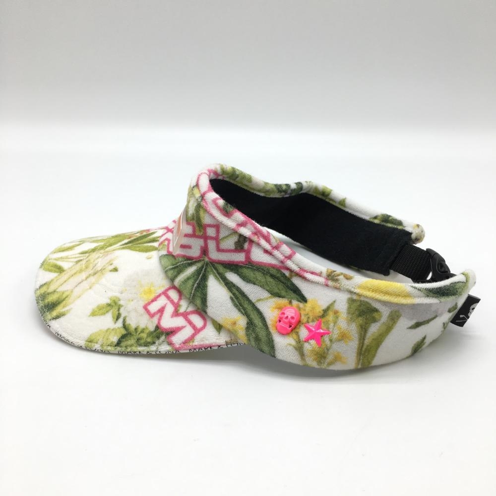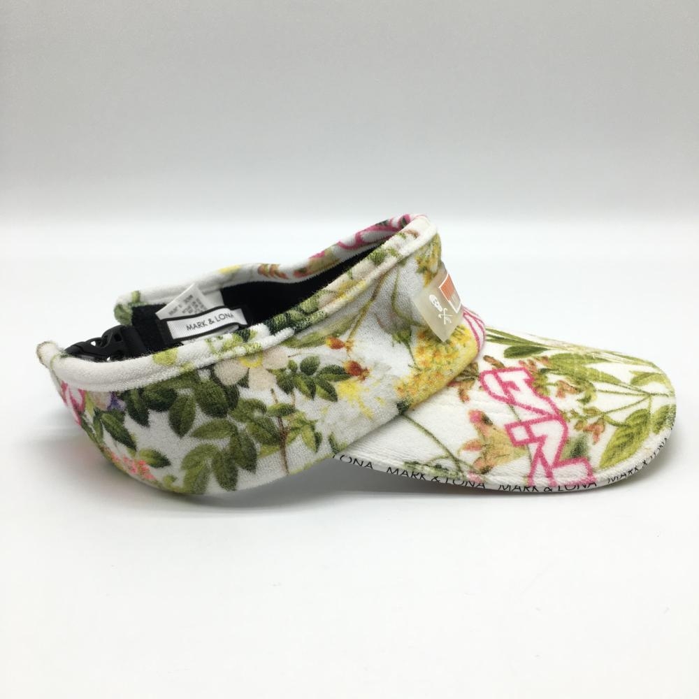 【美品】マークアンドロナ サンバイザー 白×グリーン×ピンク 花柄 パイル地 レディース FREE ゴルフウェア MARK&LONA