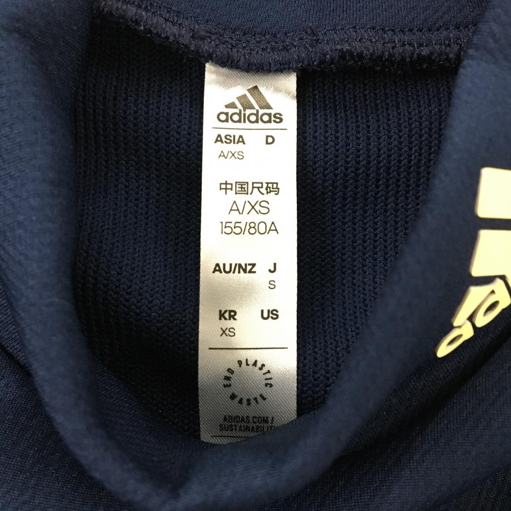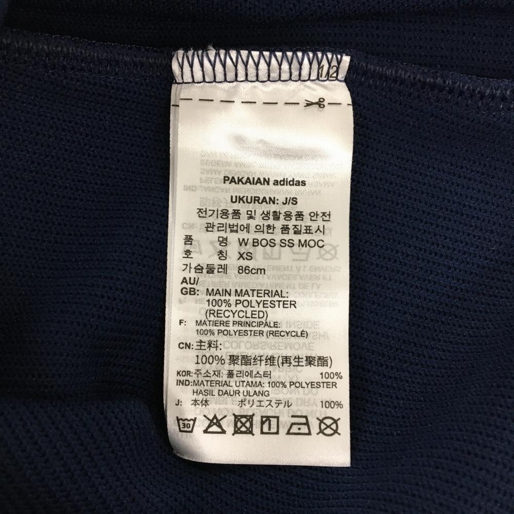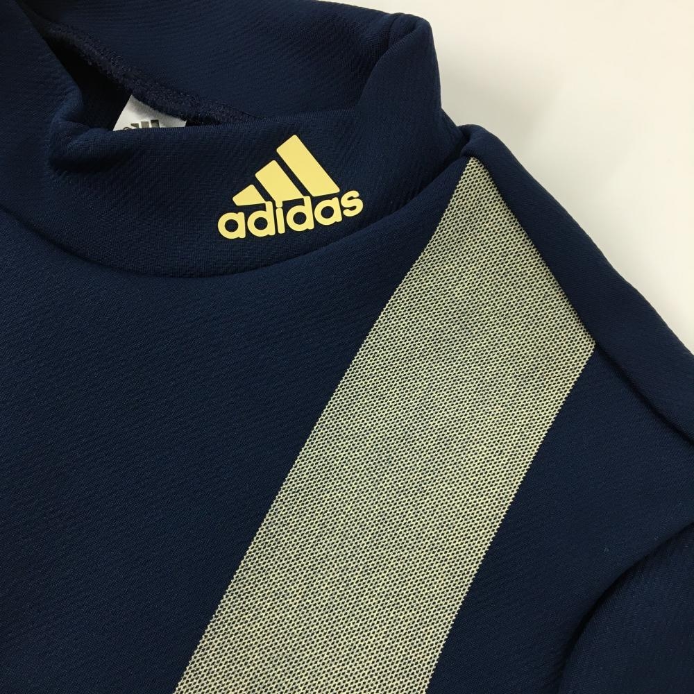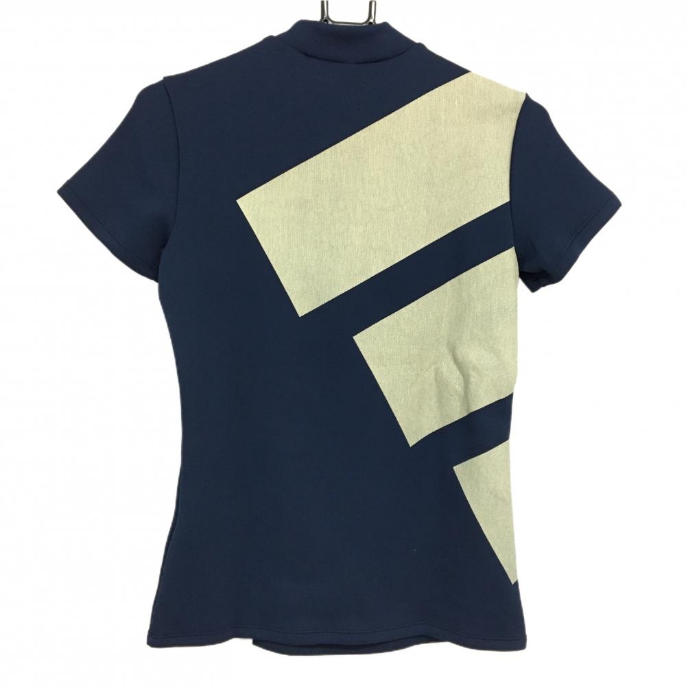 【超美品】アディダス 半袖ハイネックシャツ ネイビー×グレー系 縦ライン ネックロゴ レディース S ゴルフウェア adidas