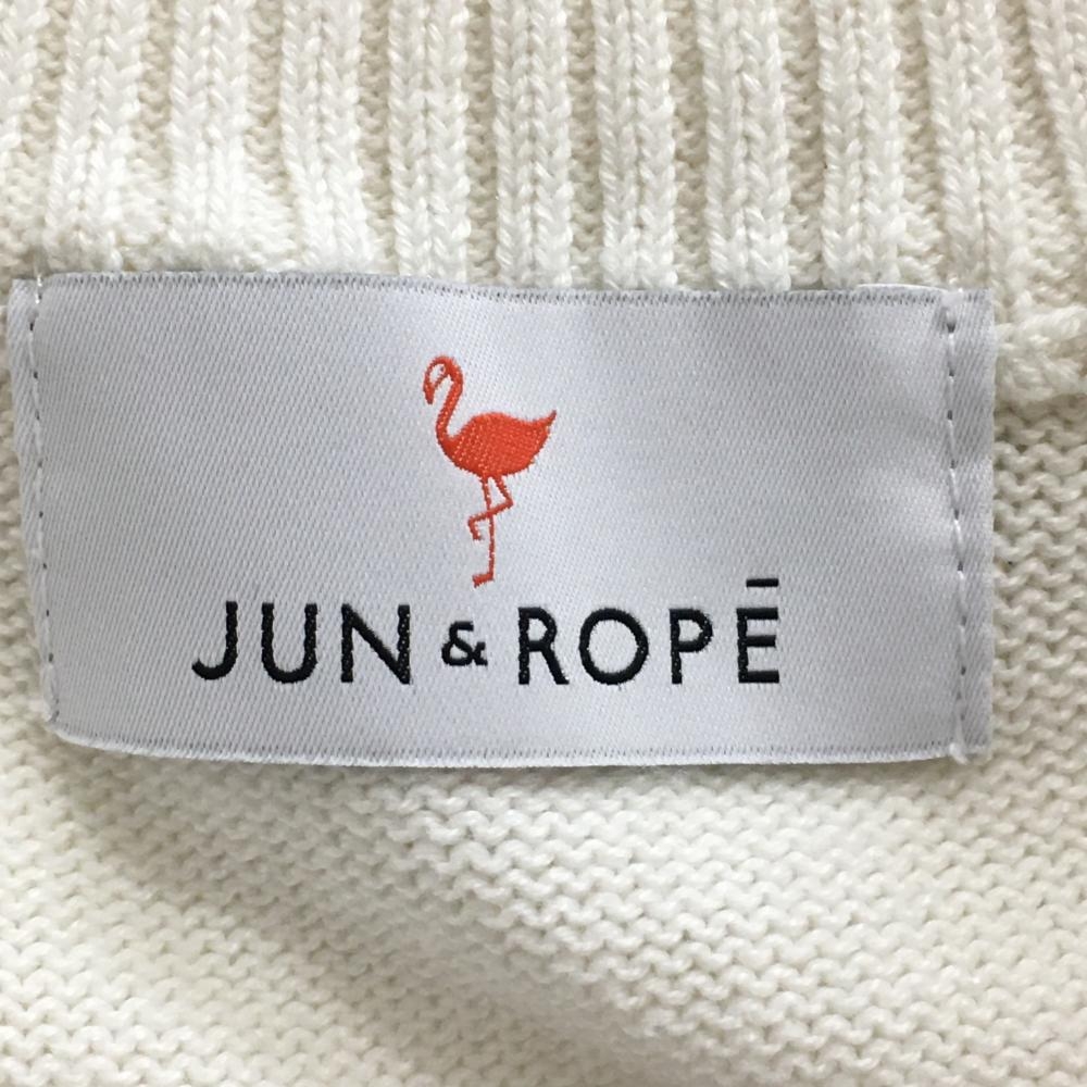 【美品】ジュンアンドロペ ニットベスト 白×ネイビー ハーフジップ 後ろビッグロゴ レディース L ゴルフウェア JUN&ROPE