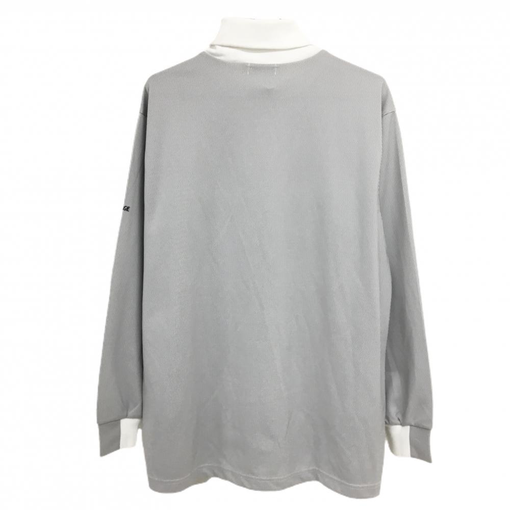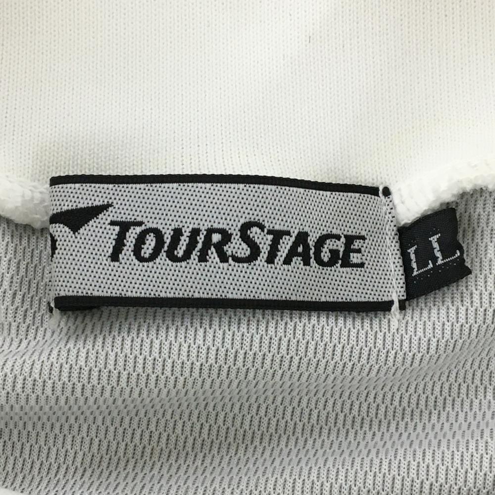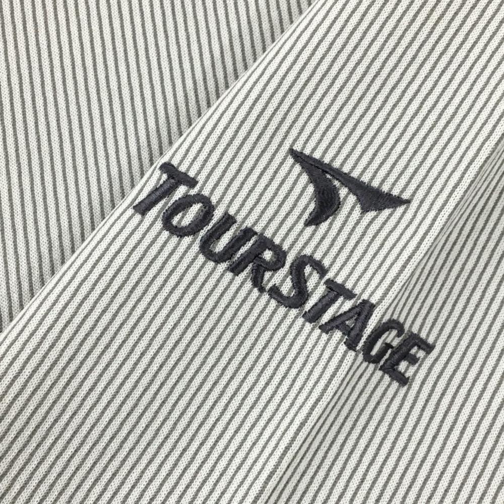 【超美品】ツアーステージ 長袖ハイネックシャツ 白×グレー ストライプ 袖刺しゅう メンズ LL ゴルフウェア TOURSTAGE