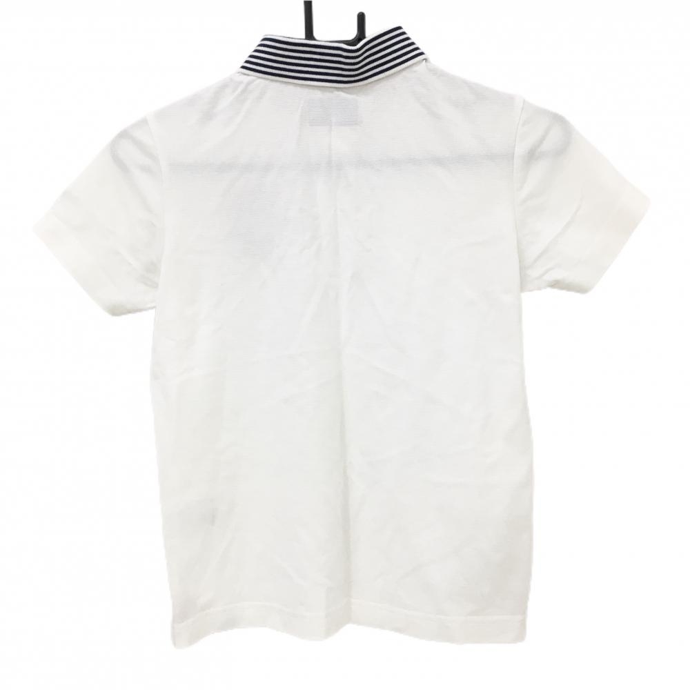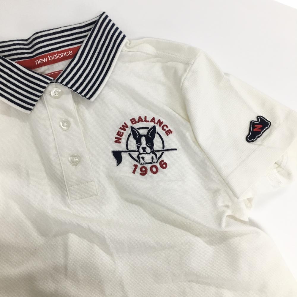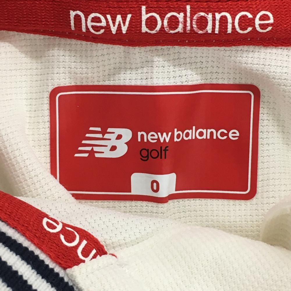 【美品】ニューバランスゴルフ 半袖ポロシャツ 白×ネイビー 襟ボーダー シューズワッペン レディース 0(S) ゴルフウェア New Balance