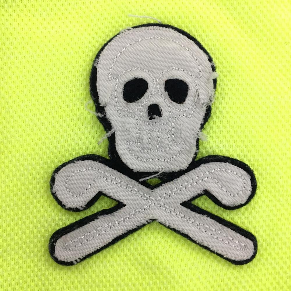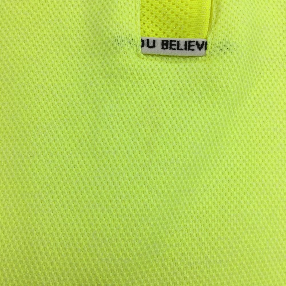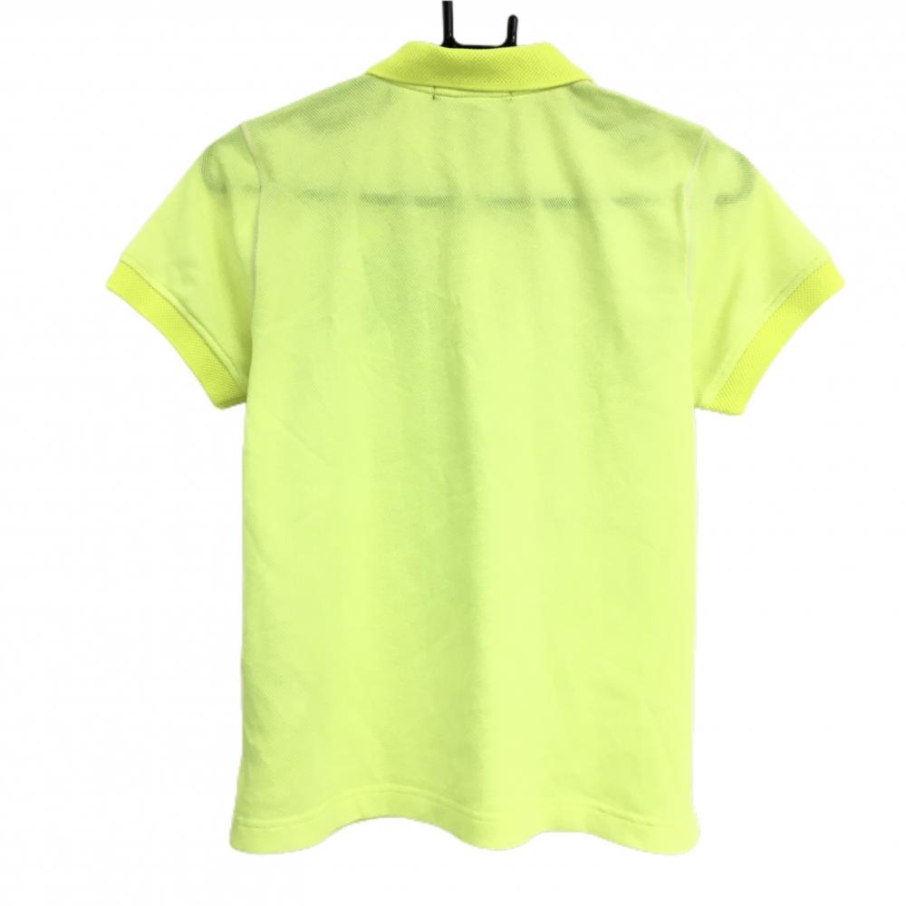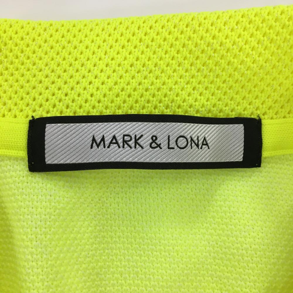 【美品】マークアンドロナ 半袖ポロシャツ 蛍光イエロー 襟・袖口ラメ ダメージ加工スカル レディース 38(M) ゴルフウェア MARK&LONA