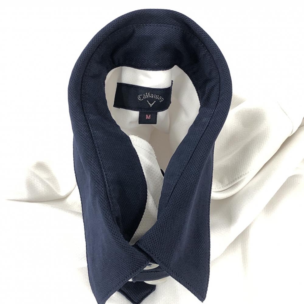 キャロウェイ 半袖ポロワンピース 白×ネイビー 胸ロゴ刺しゅう レディース M ゴルフウェア Callaway