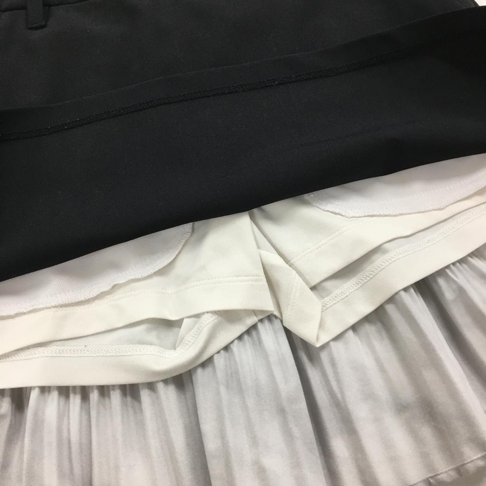 【超美品】デサントゴルフ スカート 黒×グレー LUXE COLLECTION スワロフスキー 後裾プリーツ レディース 61/S ゴルフウェア DESCENTE