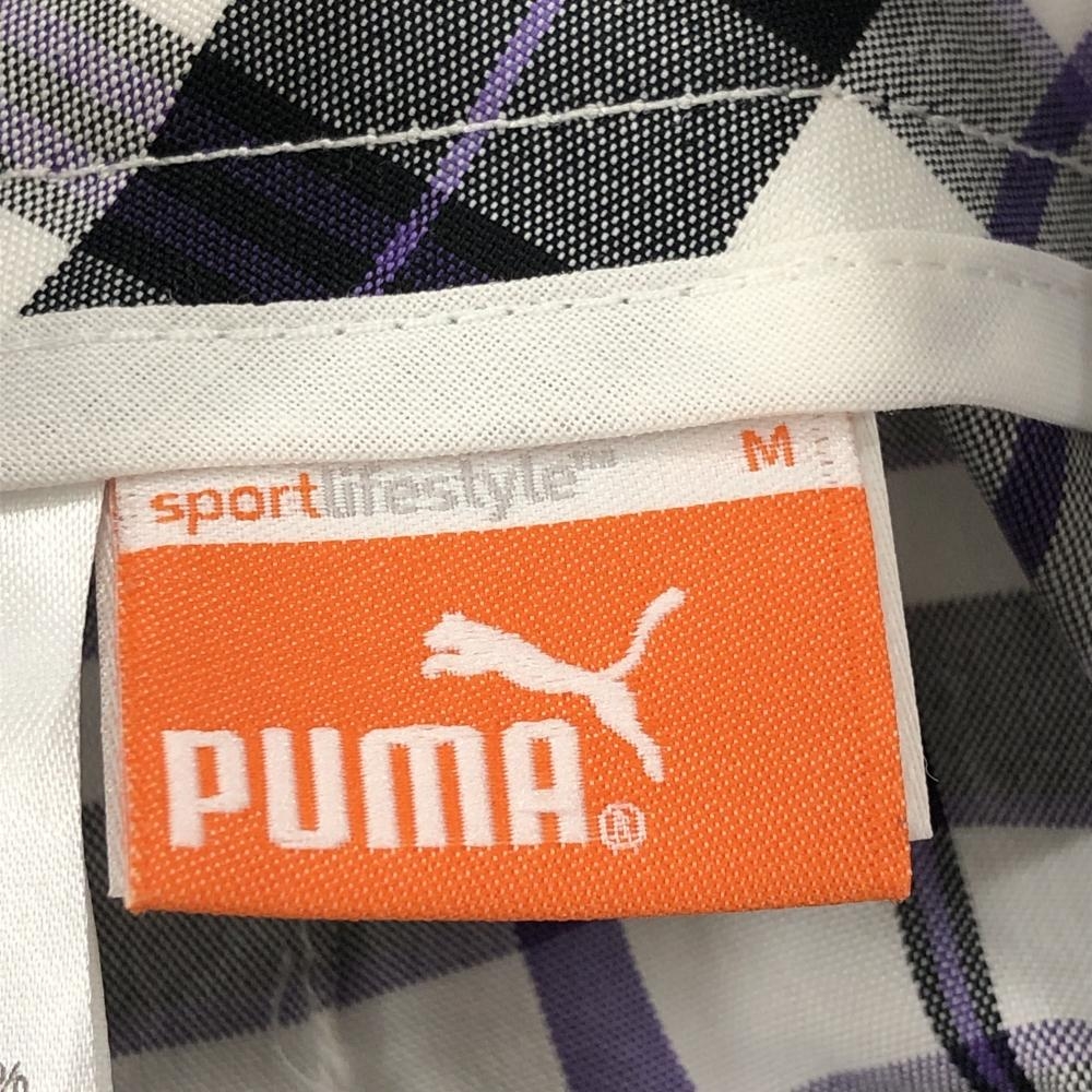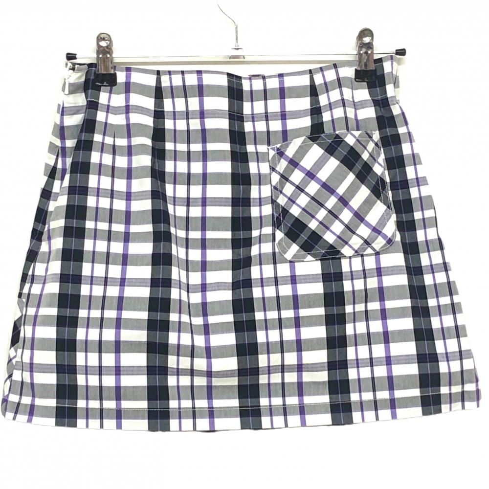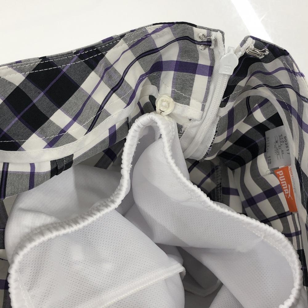 【超美品】プーマ スカート 白×パープル チェック ストレッチ インナーパンツ付き レディース M ゴルフウェア PUMA