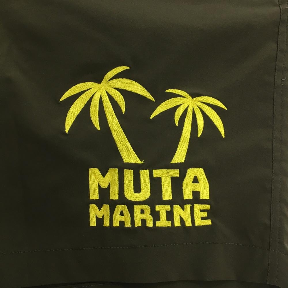 【美品】ムータマリン ハーフパンツ カーキ×イエロー ヤシの木刺しゅう ストレッチ メンズ 4(S) ゴルフウェア 2024年モデル muta