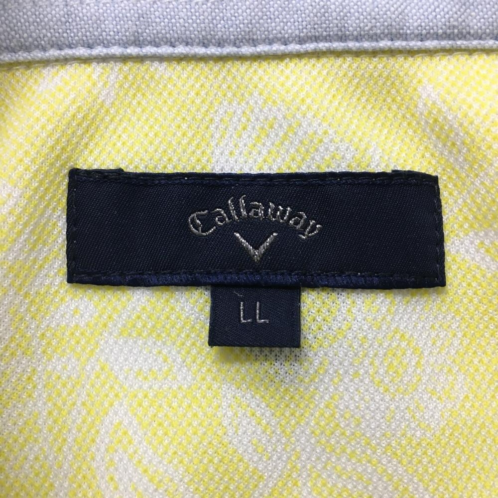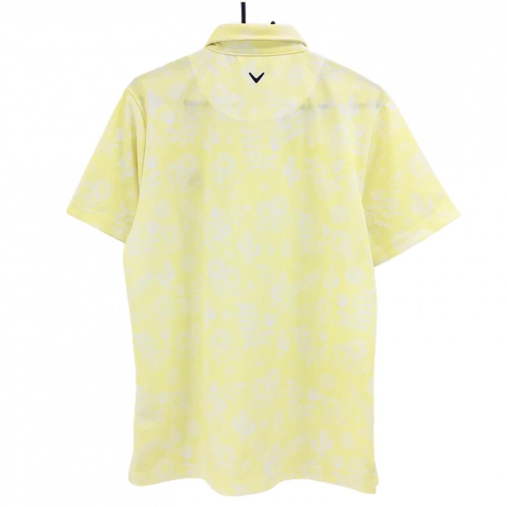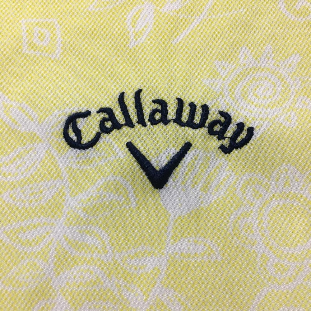 【美品】キャロウェイ 半袖ポロシャツ イエロー×白 花柄 サボテン ロゴ刺しゅう メンズ LL ゴルフウェア Callaway