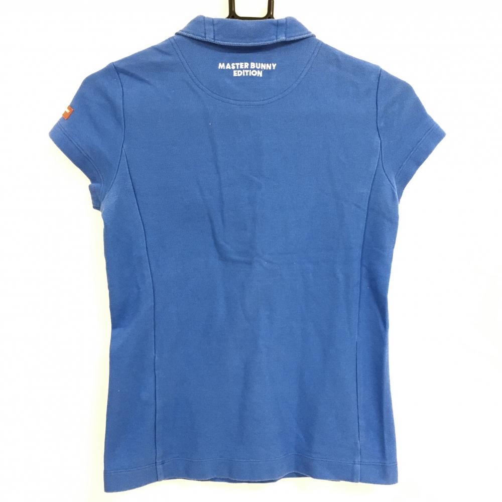 マスターバニー 半袖ポロシャツ ブルー×白 胸元ロゴ刺しゅう レディース 0(S) ゴルフウェア MASTER BUNNY EDITION