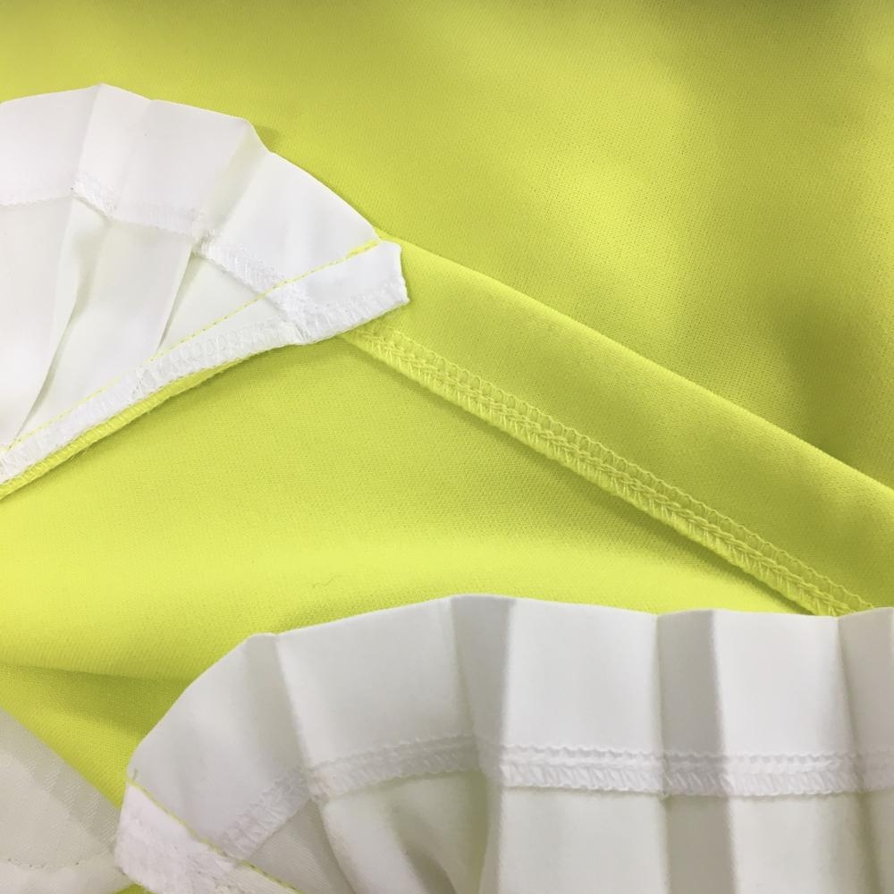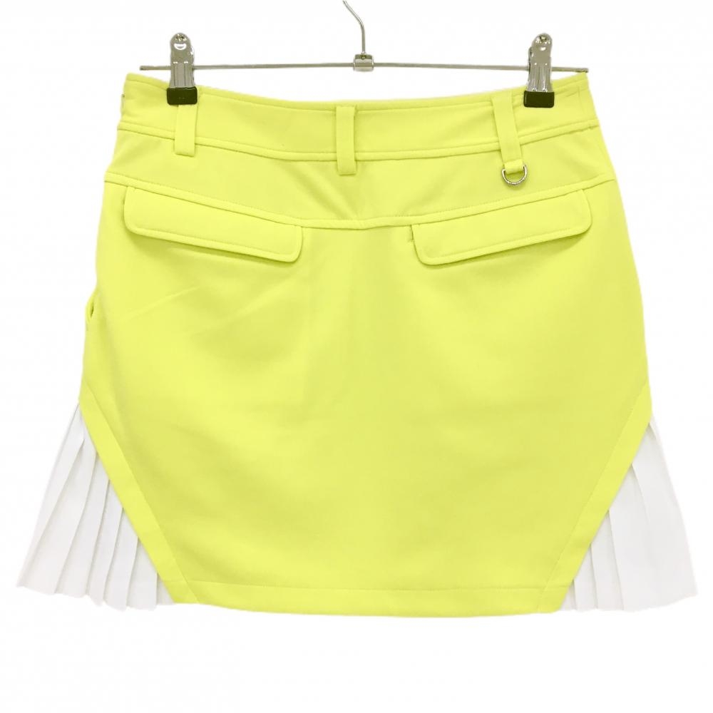 【美品】キャロウェイ スカート イエロー×白 一部プリーツ ロゴプリント ストレッチ レディース M ゴルフウェア Callaway