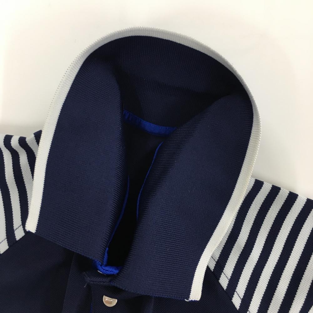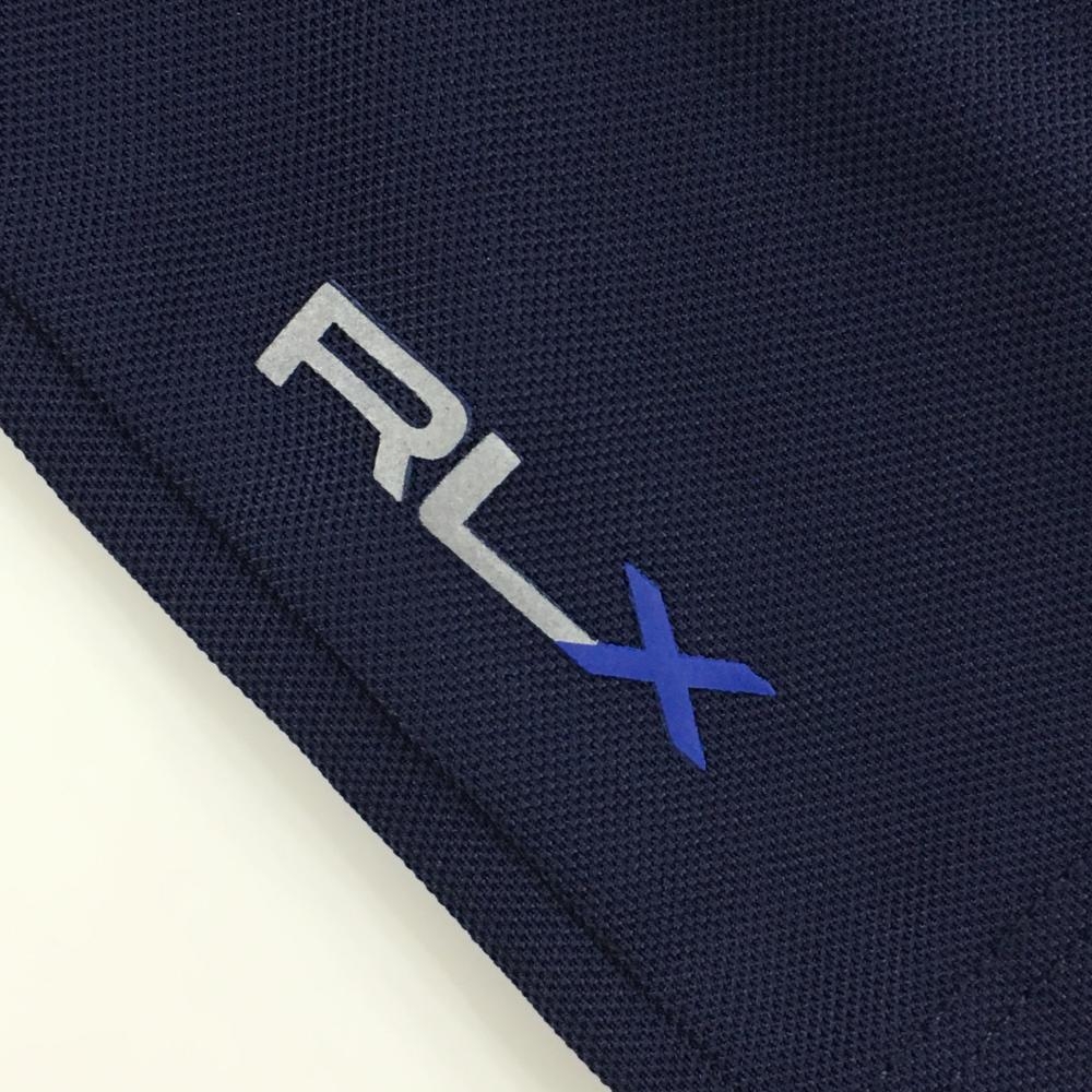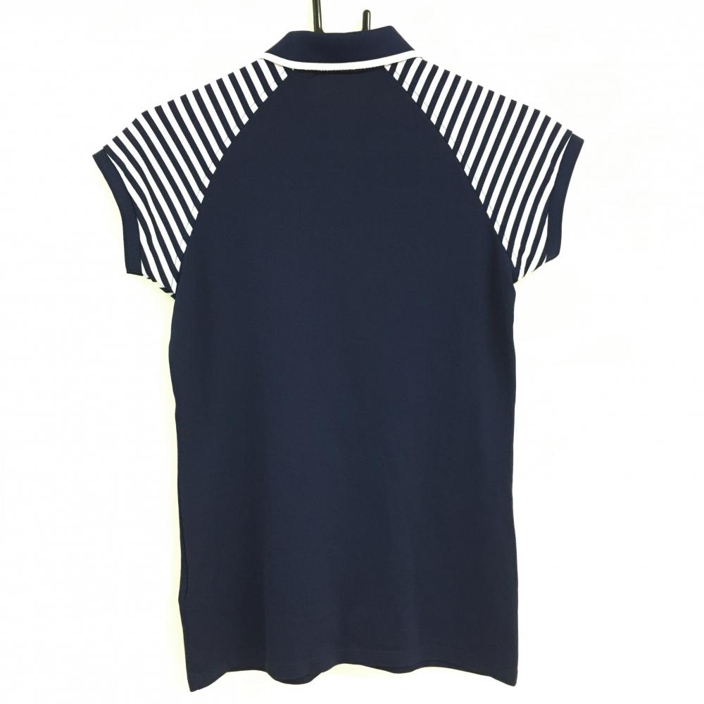 【美品】RLXラルフローレン 半袖ポロシャツ ネイビー×白 袖ストライプ レディース サイズ表記なし ゴルフウェア Ralph Lauren