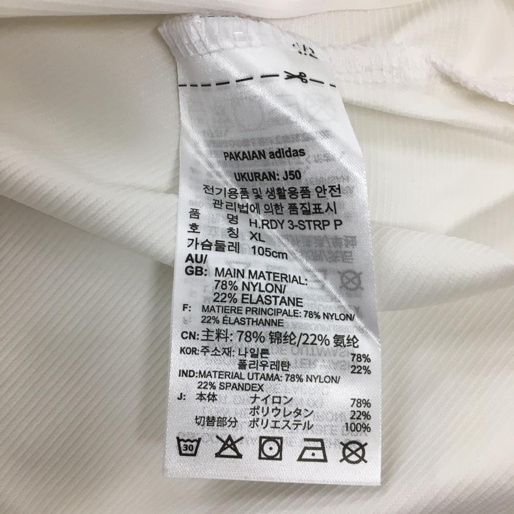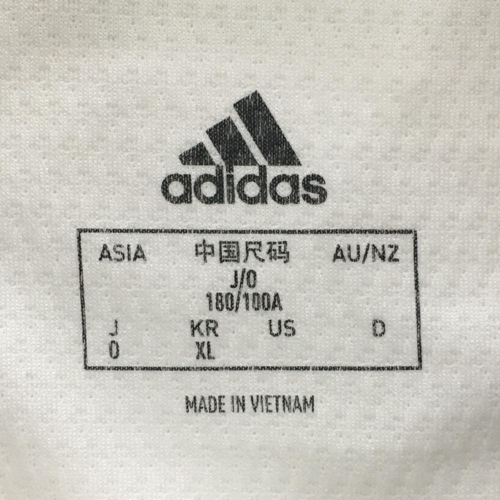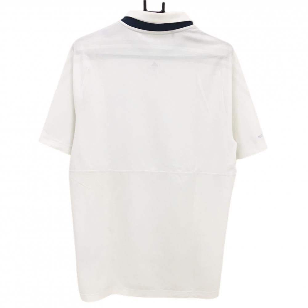 アディダス 半袖ポロシャツ 白 ロゴネイビー 袖3ライン 切替 メンズ O(XL) ゴルフウェア adidas