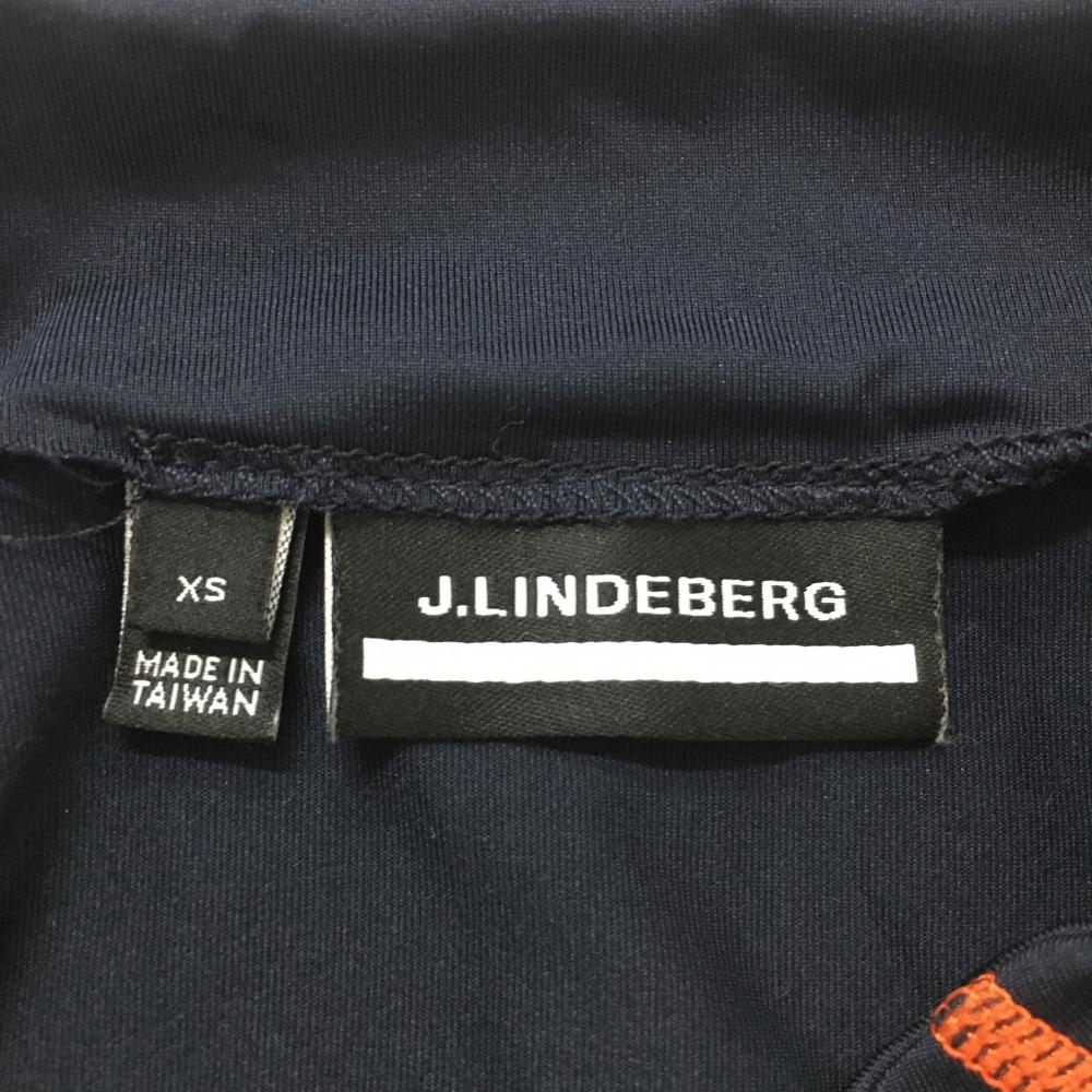 【美品】ジェイリンドバーグ ハイネックインナーシャツ ネイビー×オレンジ フロントロゴ レディース XS ゴルフウェア J.LINDEBERG