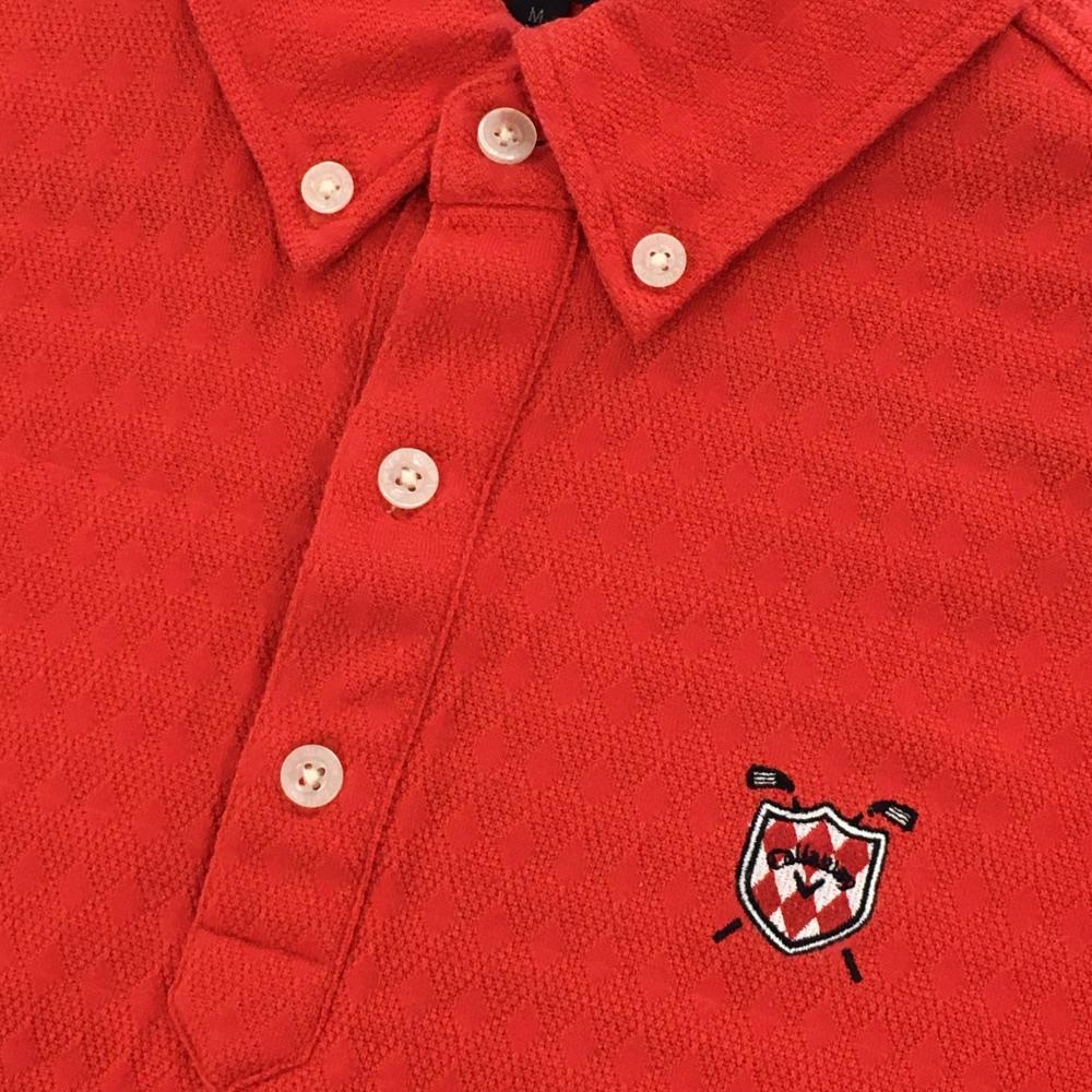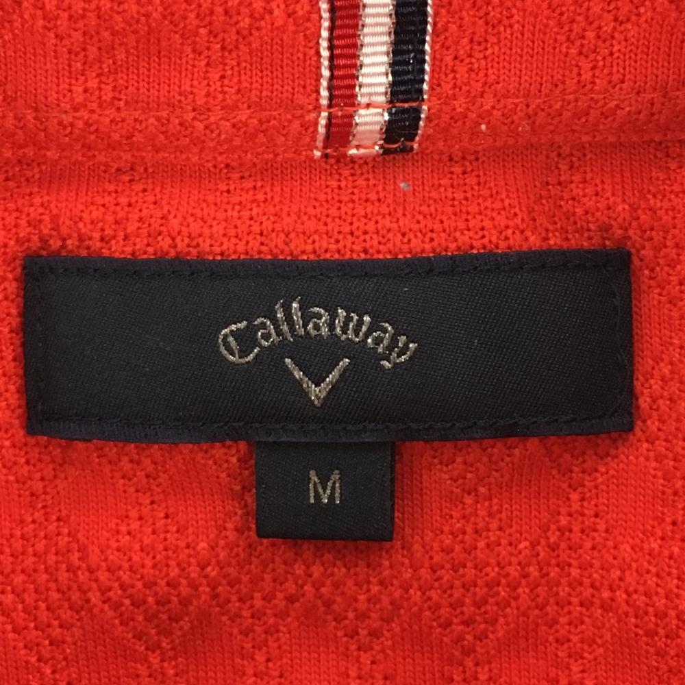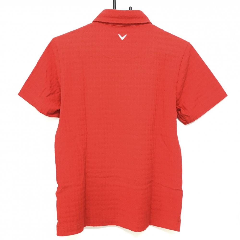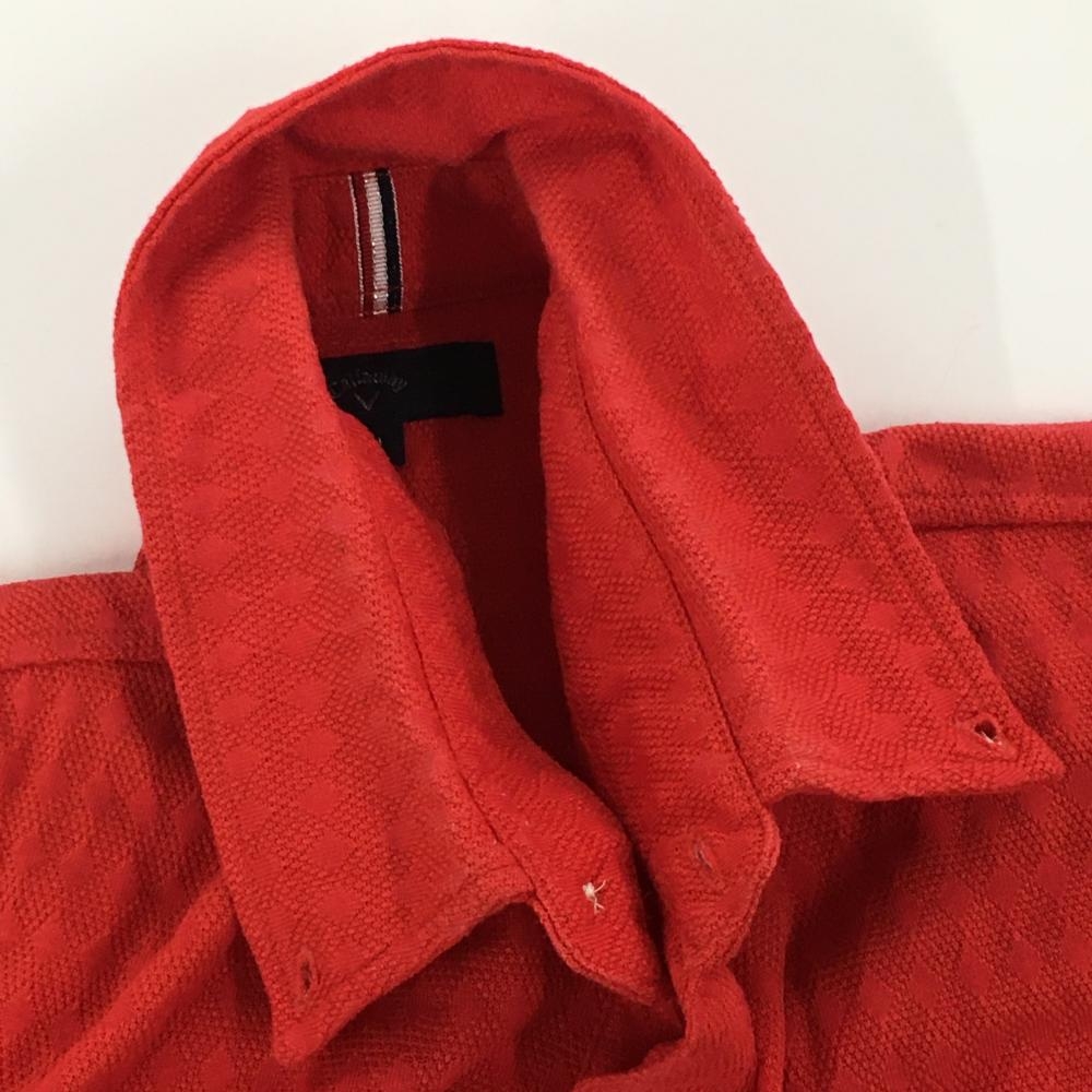 キャロウェイ 半袖ポロシャツ レッド ダイヤ柄織生地 ロゴ刺しゅう ボタンダウン メンズ M ゴルフウェア Callaway