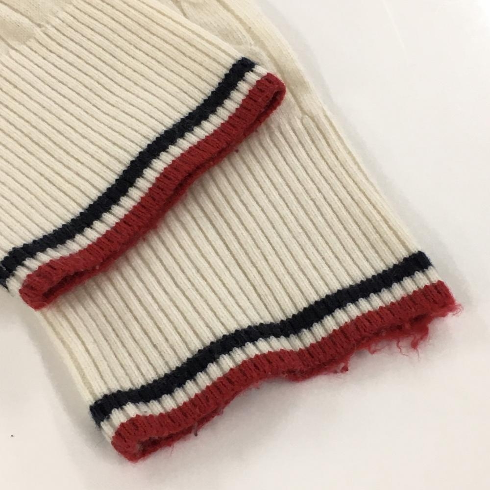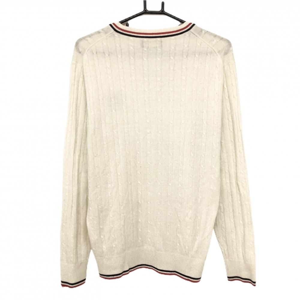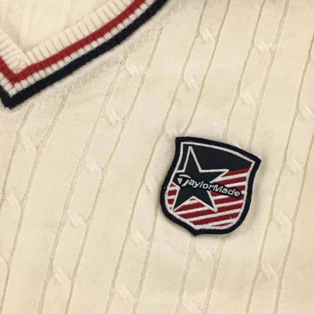 【美品】テーラーメイド セーター アイボリー×レッド ニット ケーブル編み ウール混 Vネック メンズ O ゴルフウェア TaylorMade