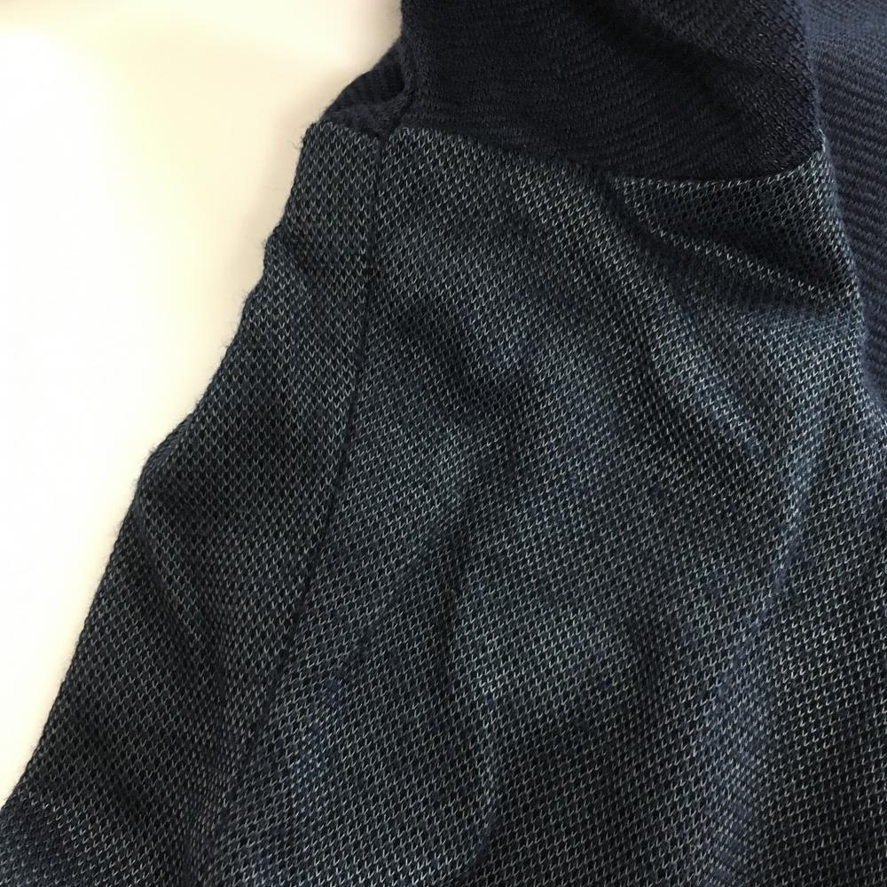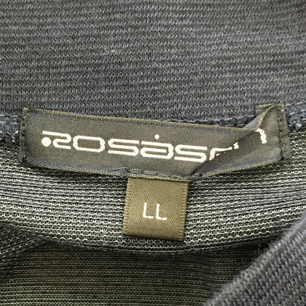 【美品】ロサーセン 長袖ハイネックシャツ ネイビー 細ボーダー サイド切替 メンズ LL ゴルフウェア Rosasen