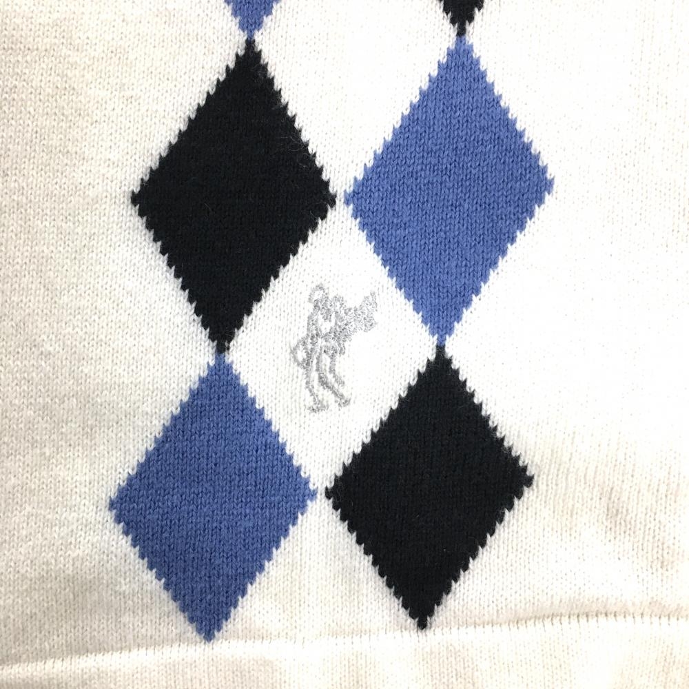 【超美品】アシュワース ニットジャケット 白×ネイビー 前身頃ダイヤ柄 ウール混 レディース S ゴルフウェア ASHWORTH