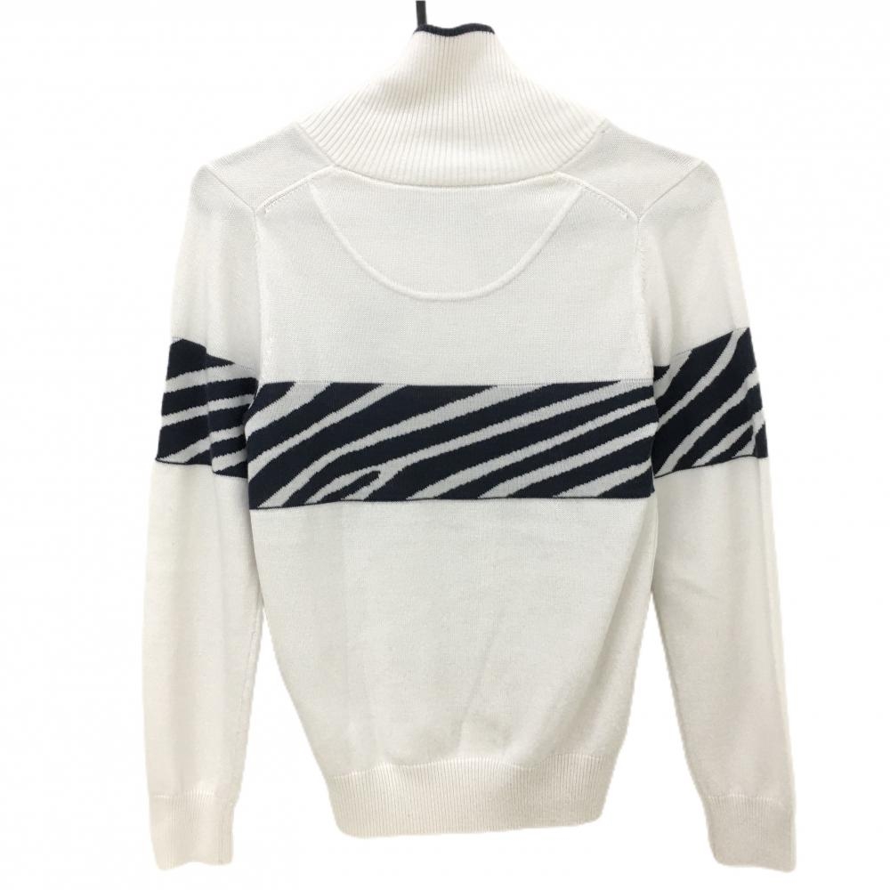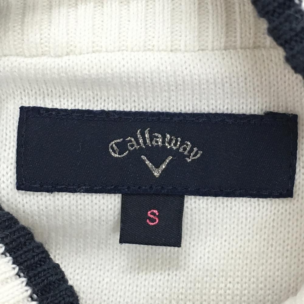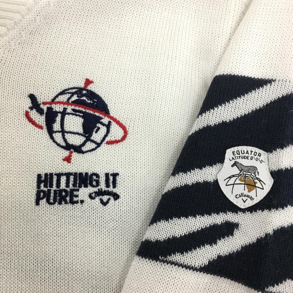 【超美品】キャロウェイ セーター 白×ネイビー 袖・背面一部ゼブラ調柄 ウール混 レディース S ゴルフウェア Callaway