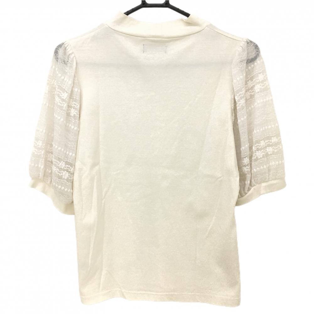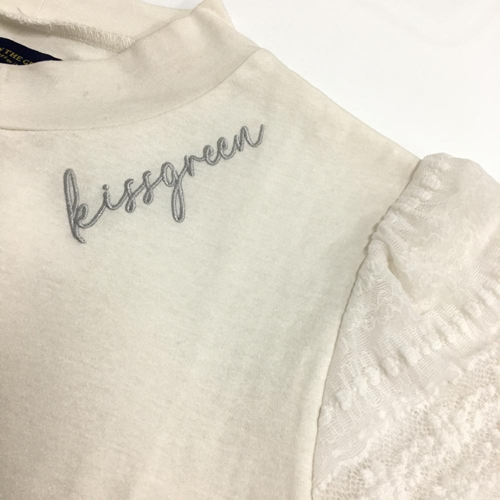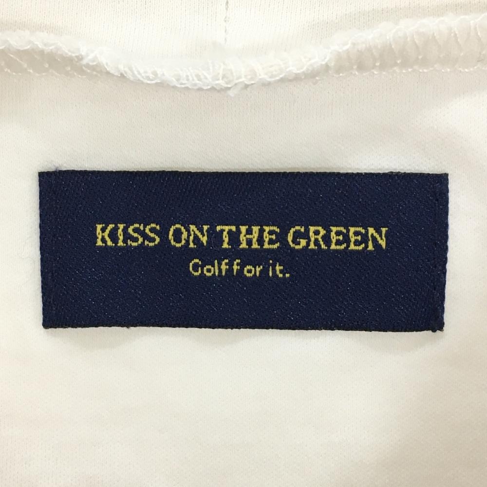 【美品】キスオンザグリーン 半袖ハイネックシャツ アイボリー 袖レース ロゴ刺しゅう レディース 2(M) ゴルフウェア kiss on the green