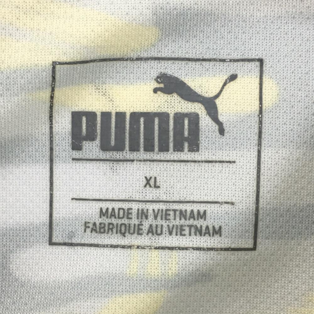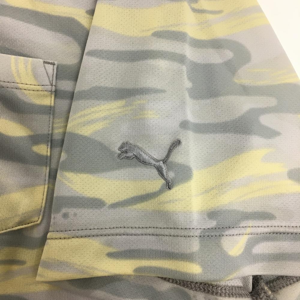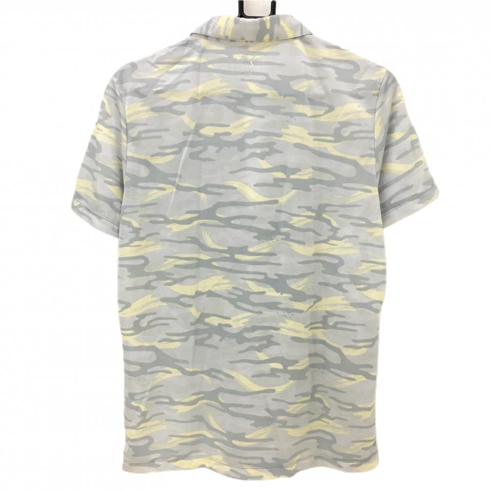 プーマ 半袖ポロシャツ グレー×イエロー 迷彩 カモフラ ボタンダウン メンズ XL ゴルフウェア PUMA