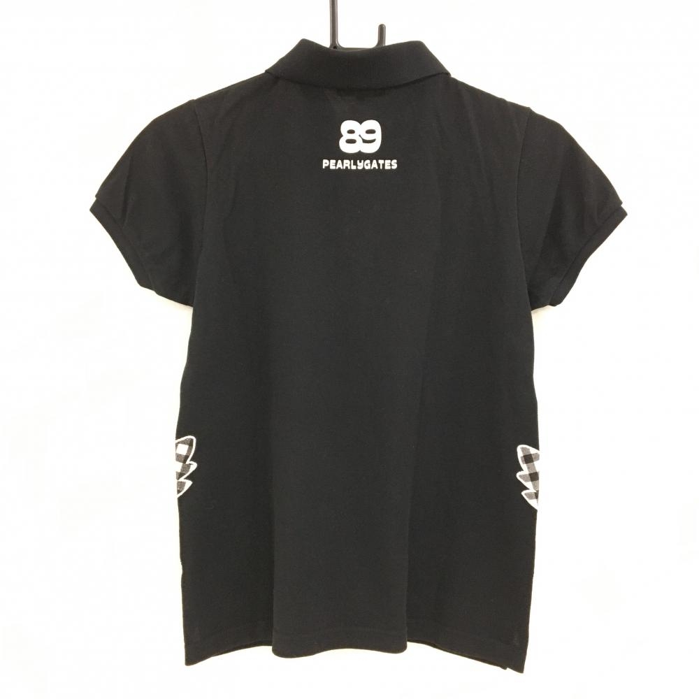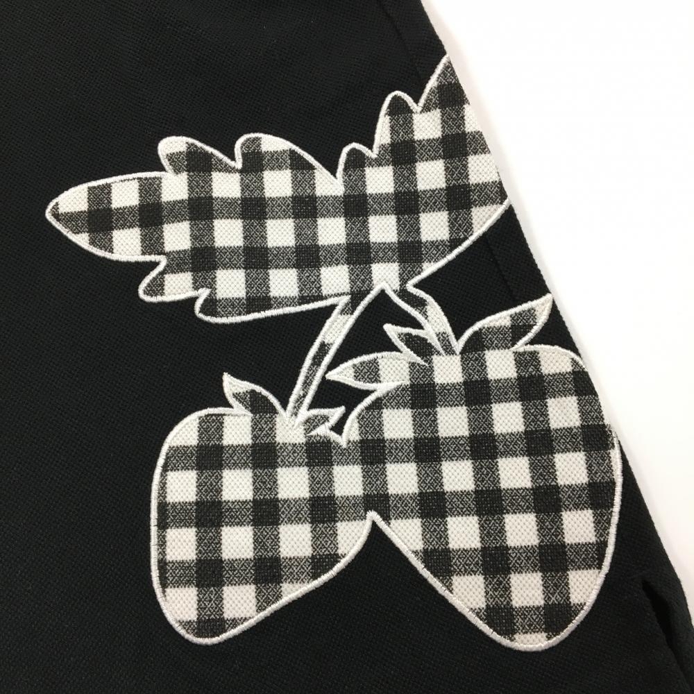 パーリーゲイツ 半袖ポロシャツ 黒×白 いちごワッペン レディース 0(S) ゴルフウェア PEARLY GATES