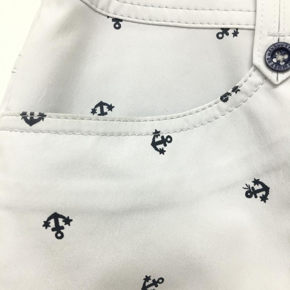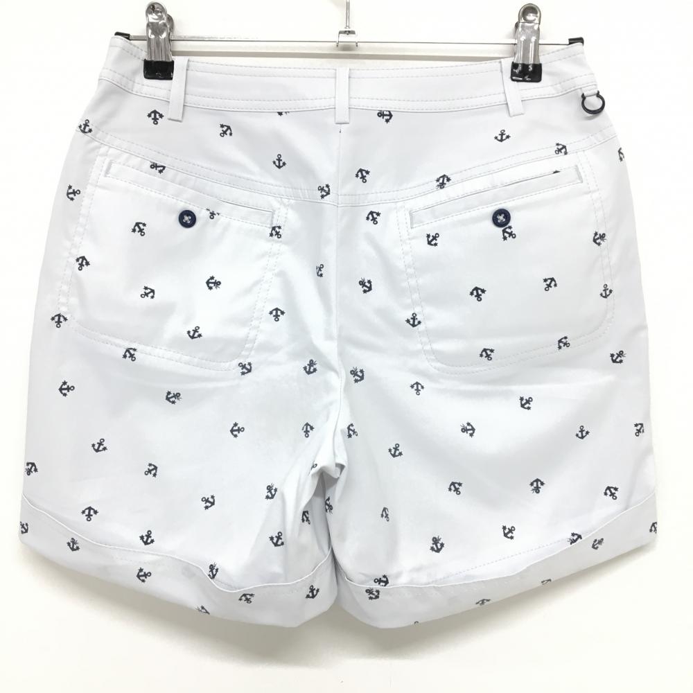 【美品】アダバット ショートパンツ オフホワイト×ネイビー イカリ柄 レディース 38(M) ゴルフウェア adabat