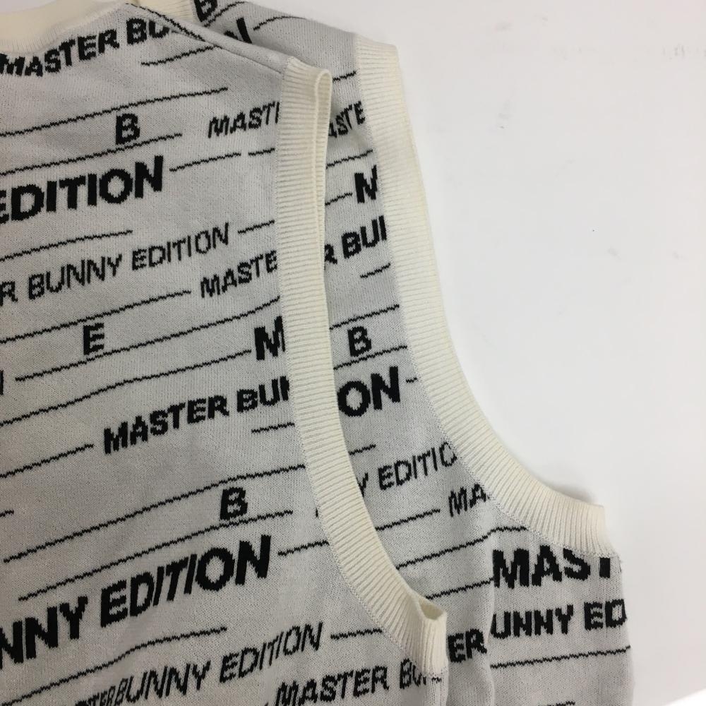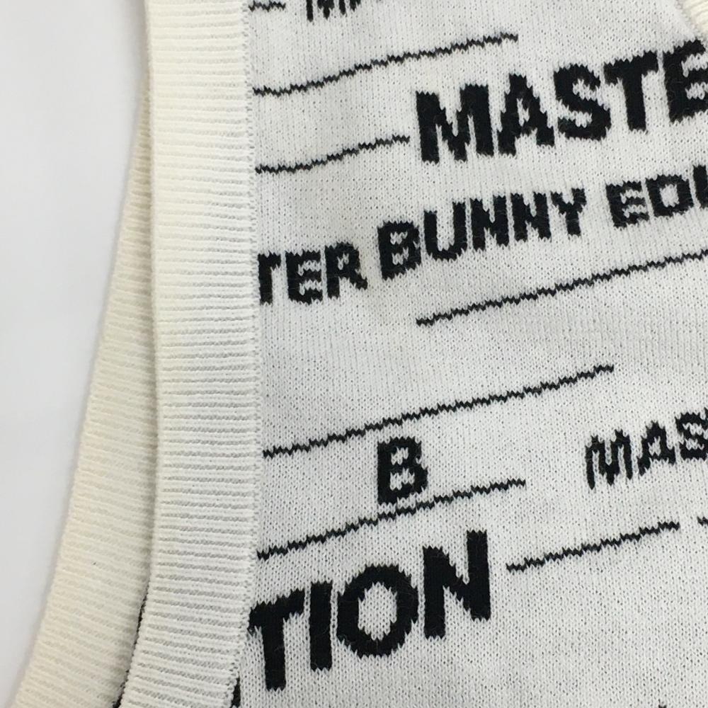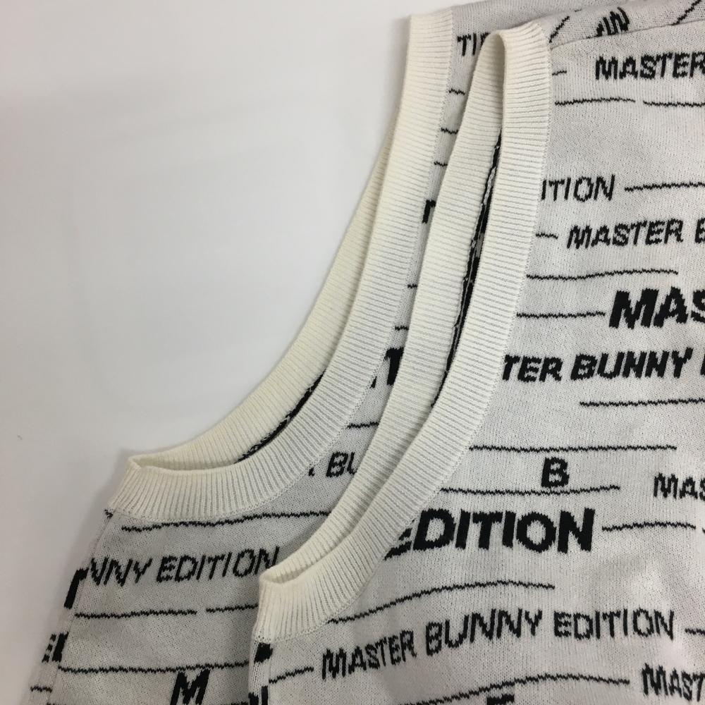 【美品】マスターバニー ニットベスト 白×黒 ロゴ総柄 コットン混 レディース 1(M) ゴルフウェア MASTER BUNNY EDITION
