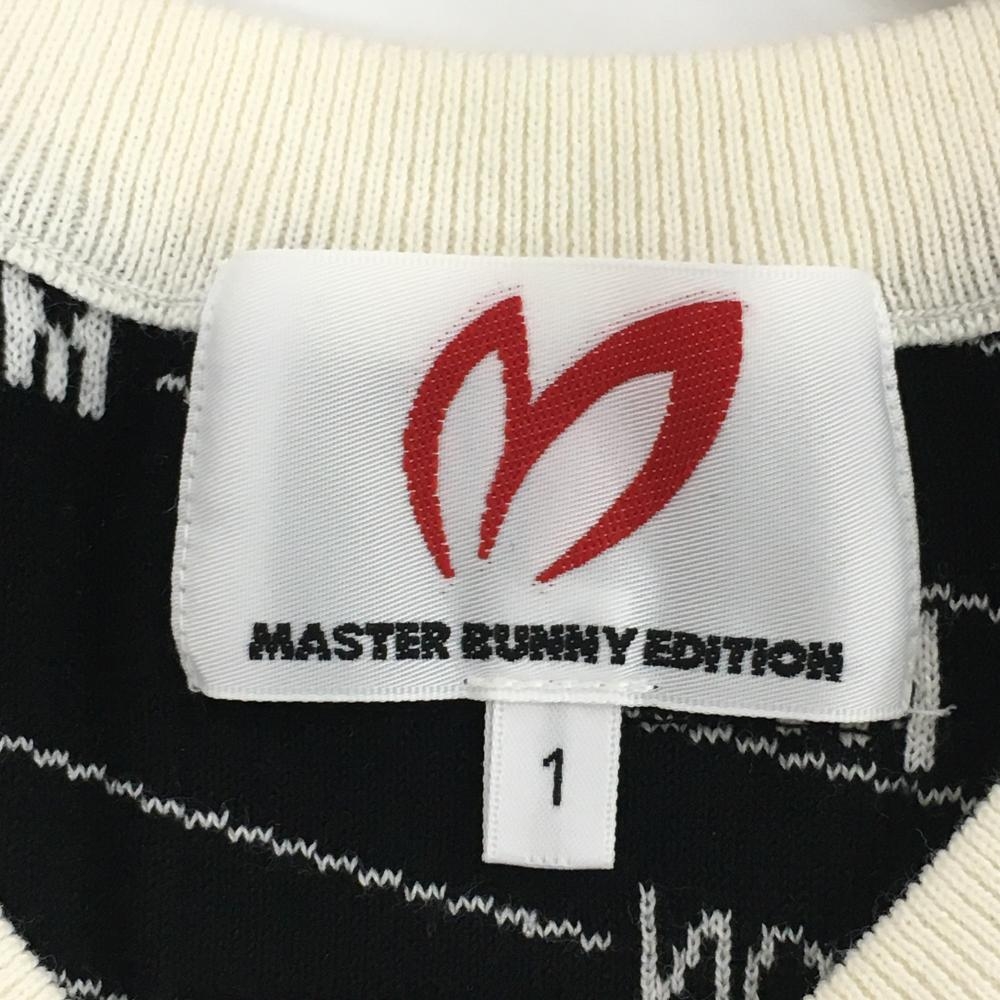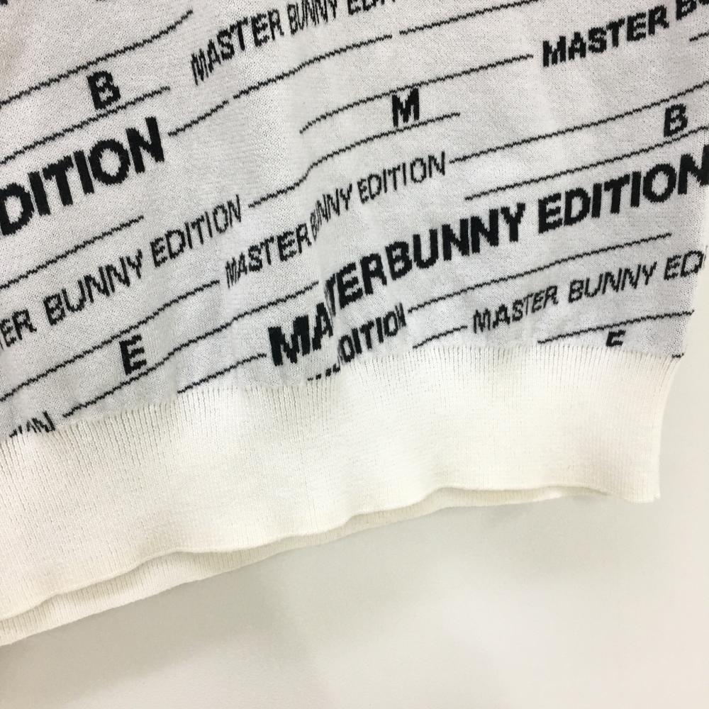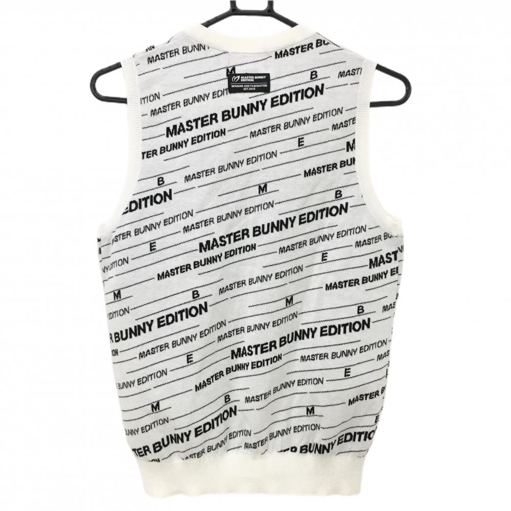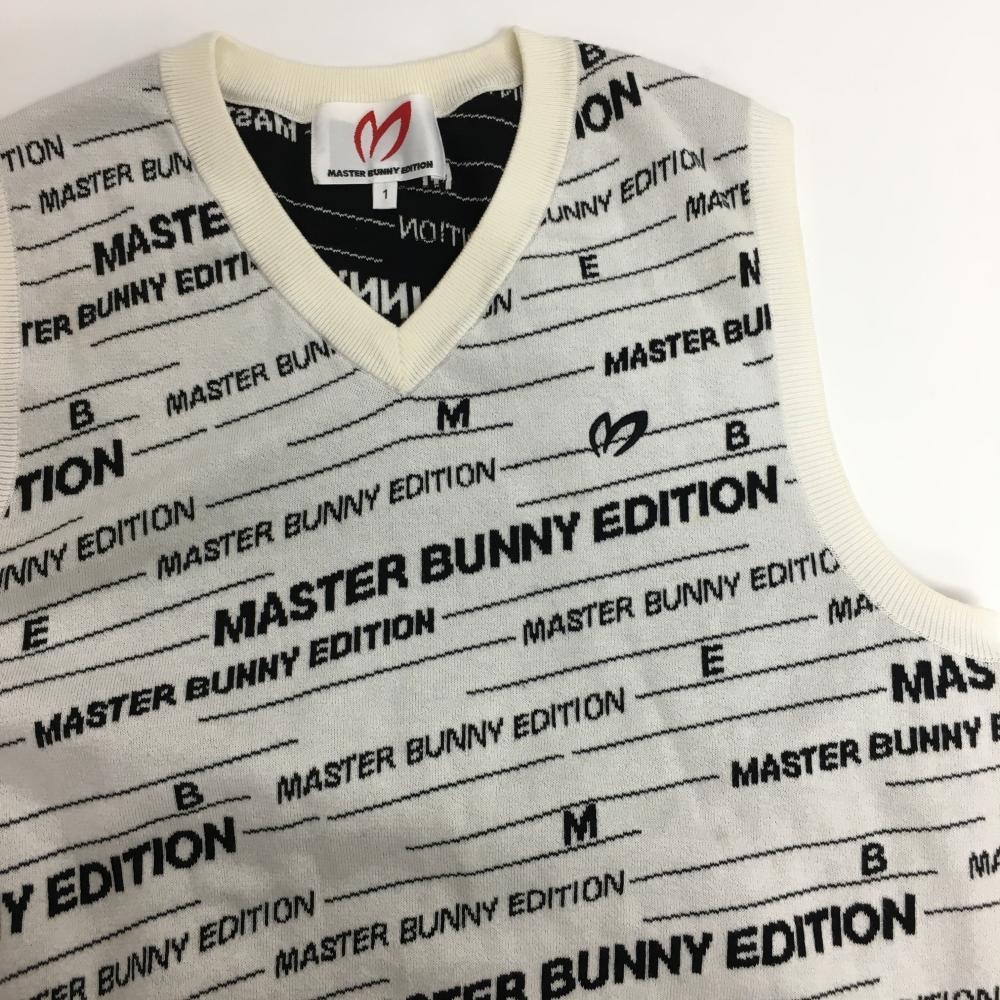 【美品】マスターバニー ニットベスト 白×黒 ロゴ総柄 コットン混 レディース 1(M) ゴルフウェア MASTER BUNNY EDITION