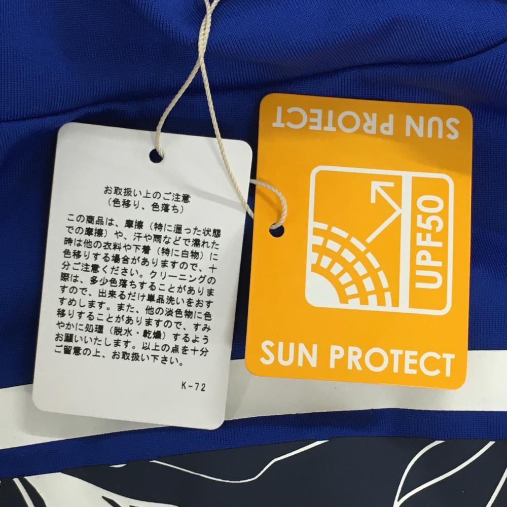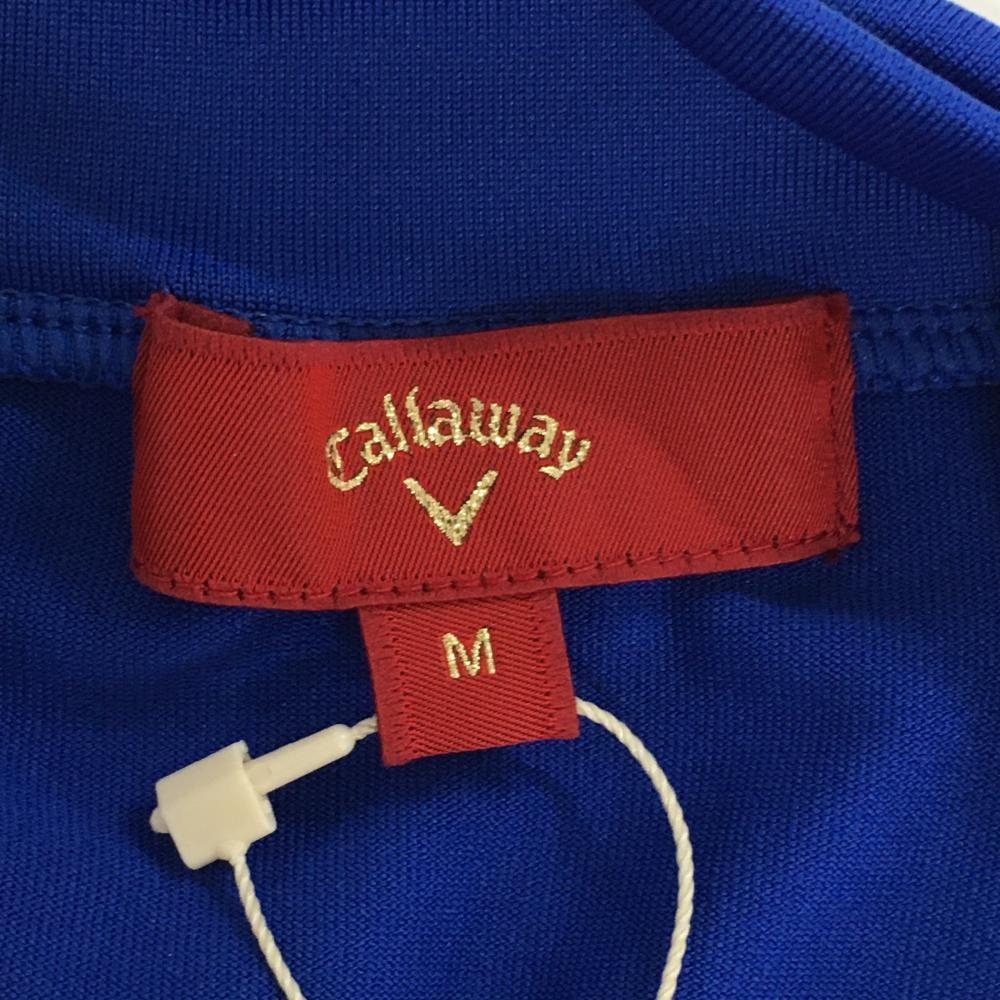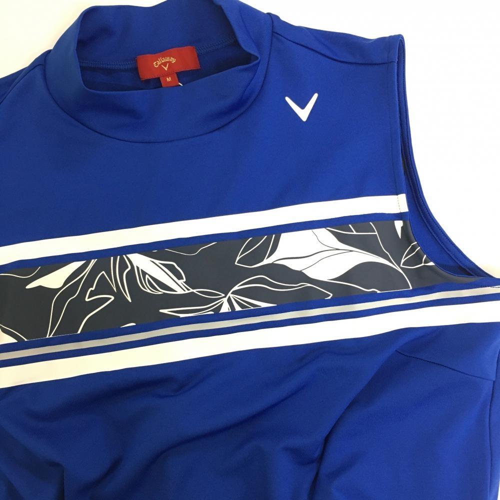 【新品】キャロウェイ レッドレーベル ノースリーブハイネックシャツ ブルー×白 胸元リーフ柄 レディース M ゴルフウェア Callaway