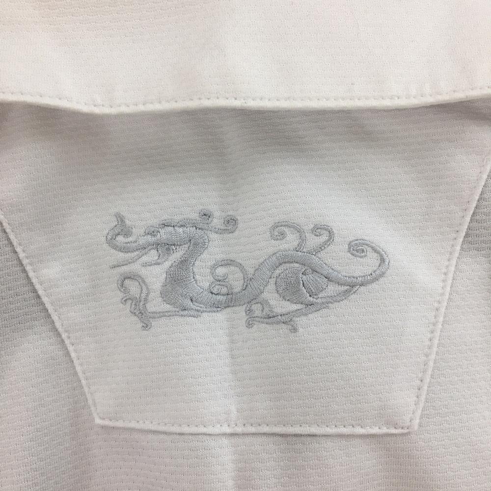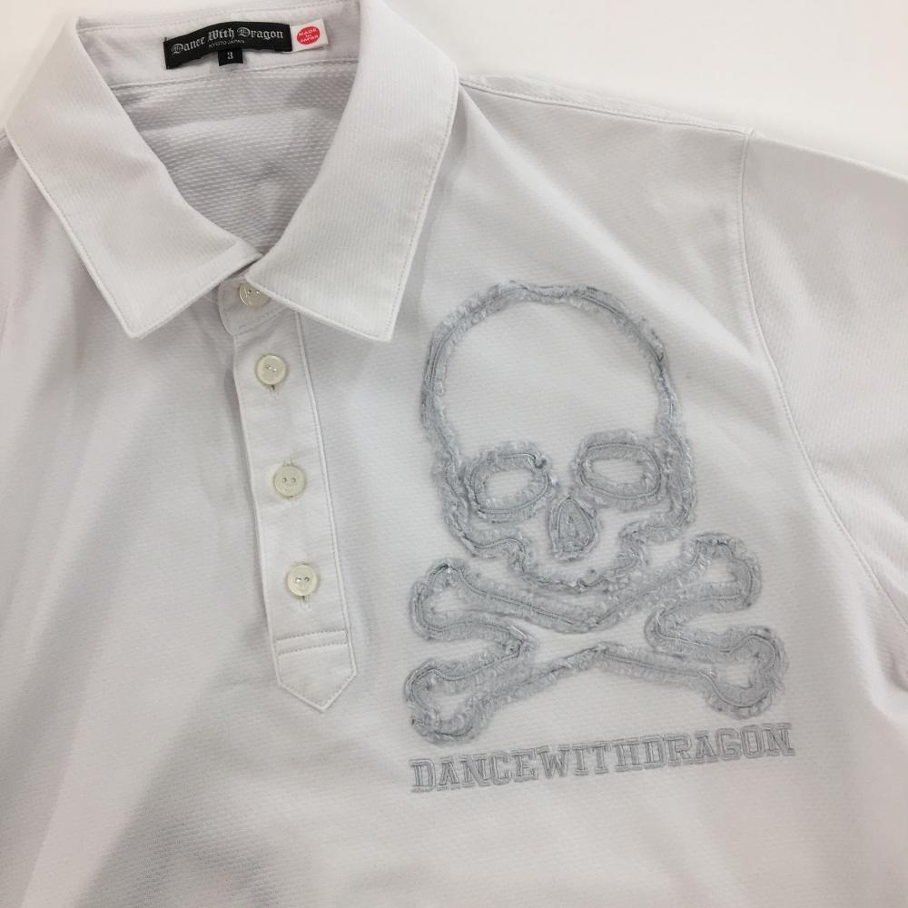 【美品】ダンスウィズドラゴン 半袖ポロシャツ 白 胸スカル メンズ 3(L) ゴルフウェア Dance With Dragon