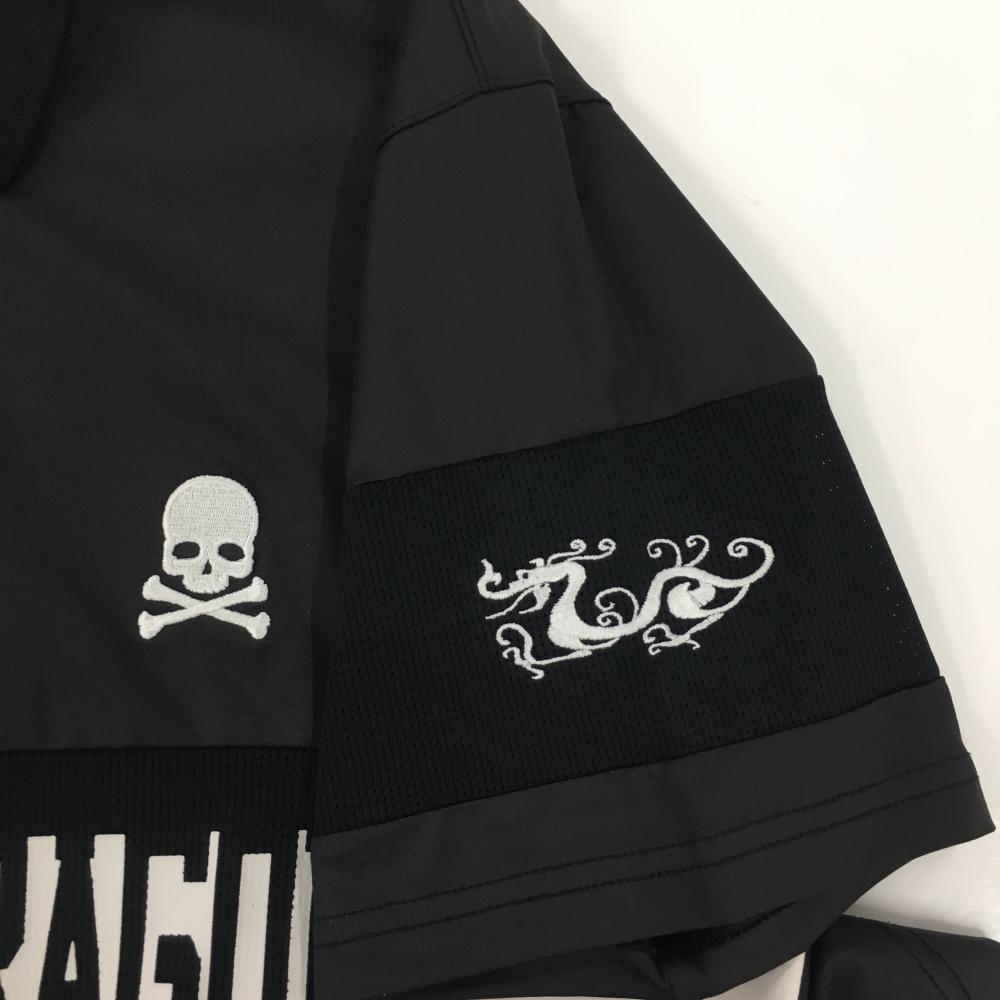 【超美品】ダンスウィズドラゴン 半袖ポロシャツ 黒×白 袖・腹部メッシュ調 スカル メンズ 3(L) ゴルフウェア Dance With Dragon