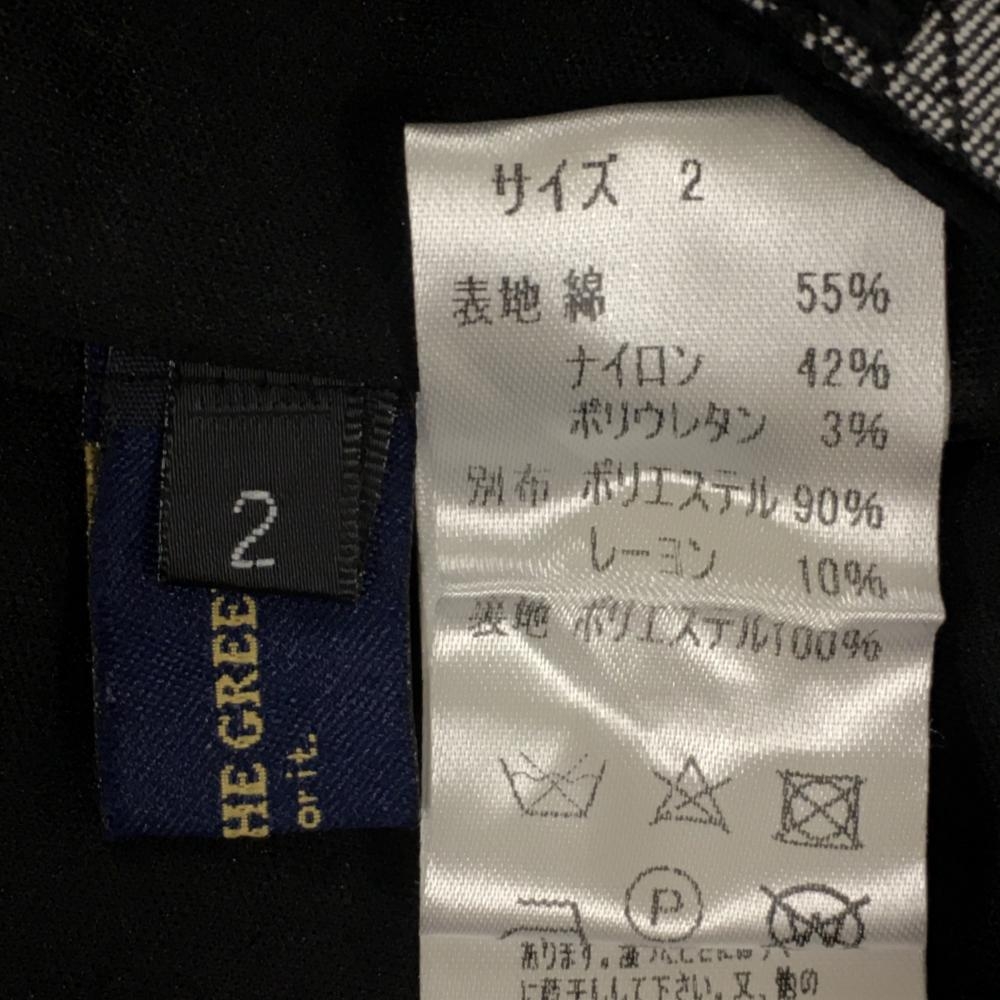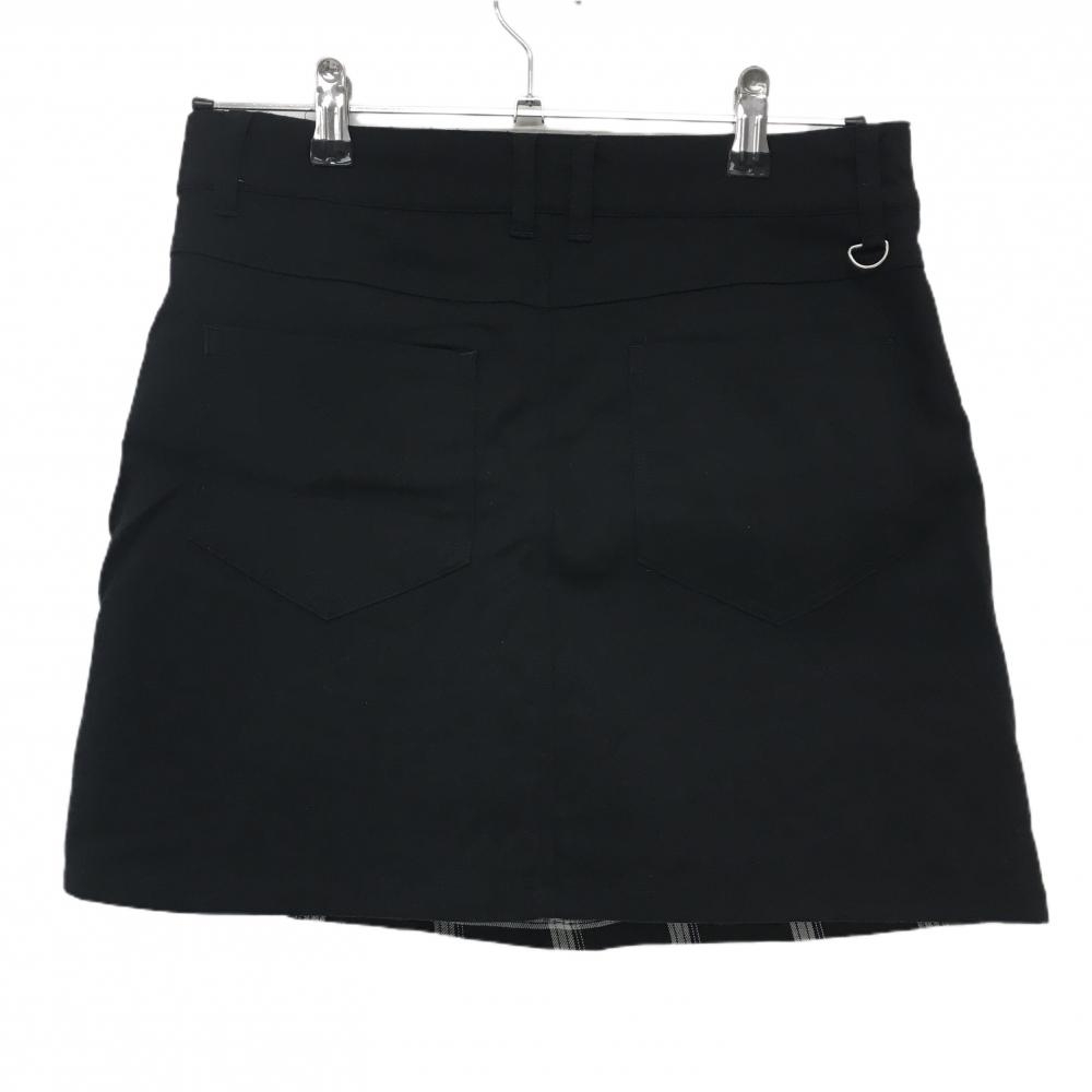【美品】キスオンザグリーン スカート 黒×白 フロント格子柄 ラップスカート風 裾ロゴ レディース 2(M) ゴルフウェア kiss on the green