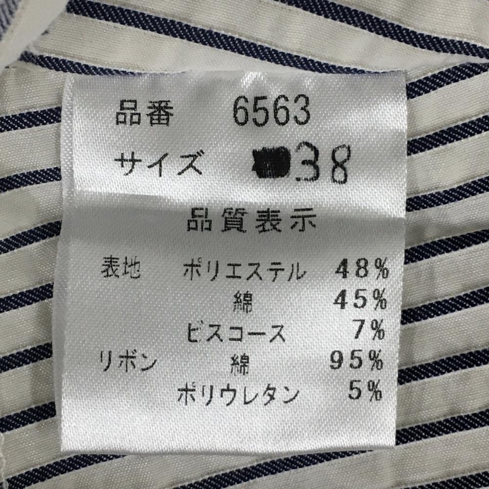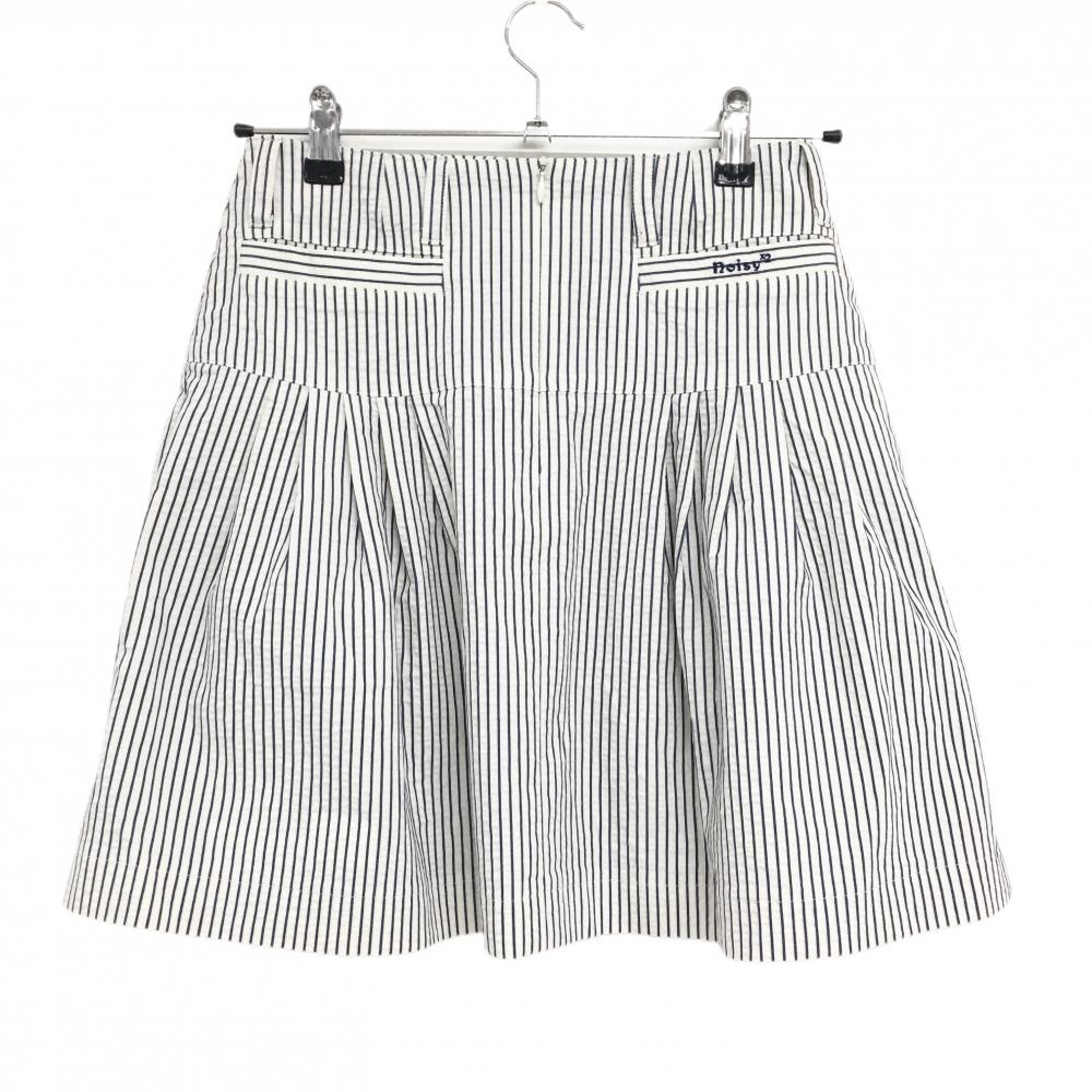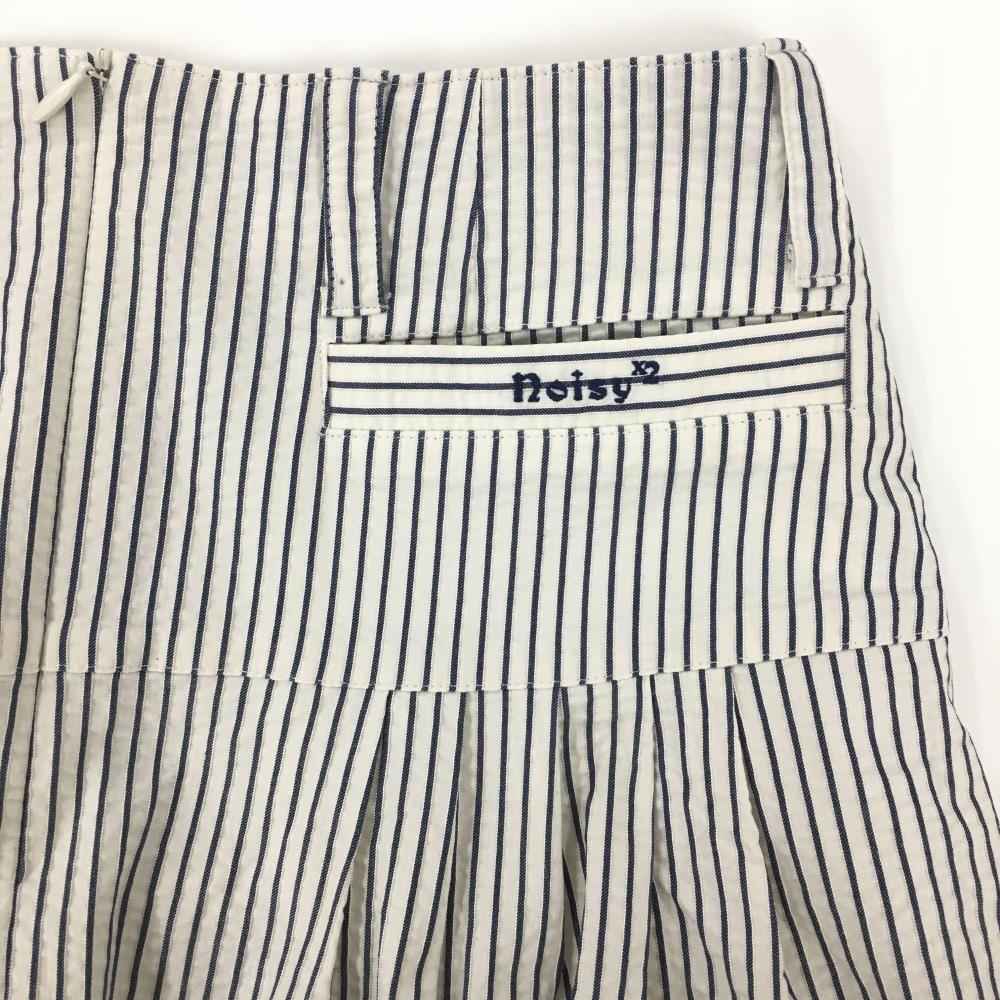 【美品】ノイジーノイジー スカート 白×ネイビー ストライプ ビッグリボン レディース 38 ゴルフウェア M・U SPORTS