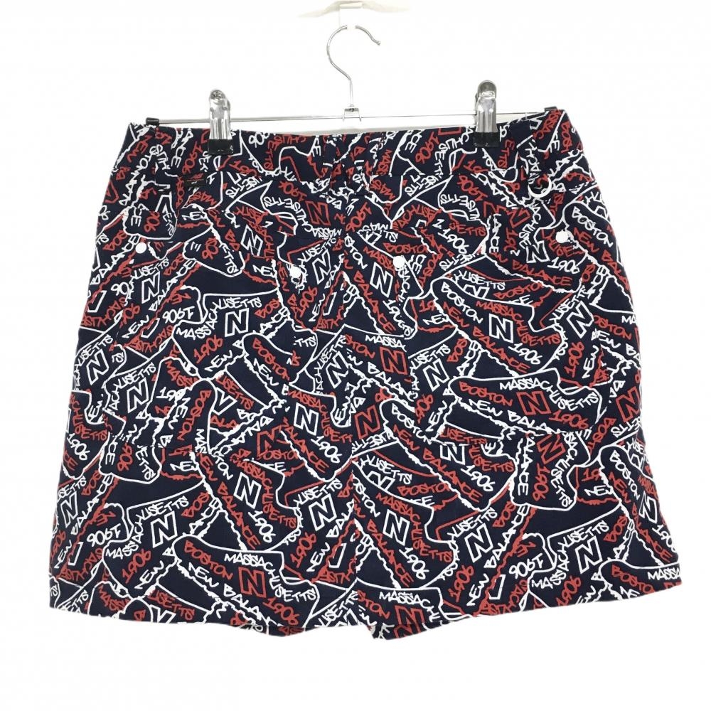 【美品】ニューバランスゴルフ スカート ネイビー×レッド 総柄 スニーカー 内側インナーパンツ レディース 2(L) ゴルフウェア New Balance
