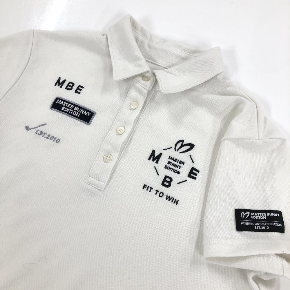 マスターバニー 半袖ポロシャツ 白×ダークネイビー 胸元ロゴ レディース 1(M) ゴルフウェア MASTER BUNNY EDITION