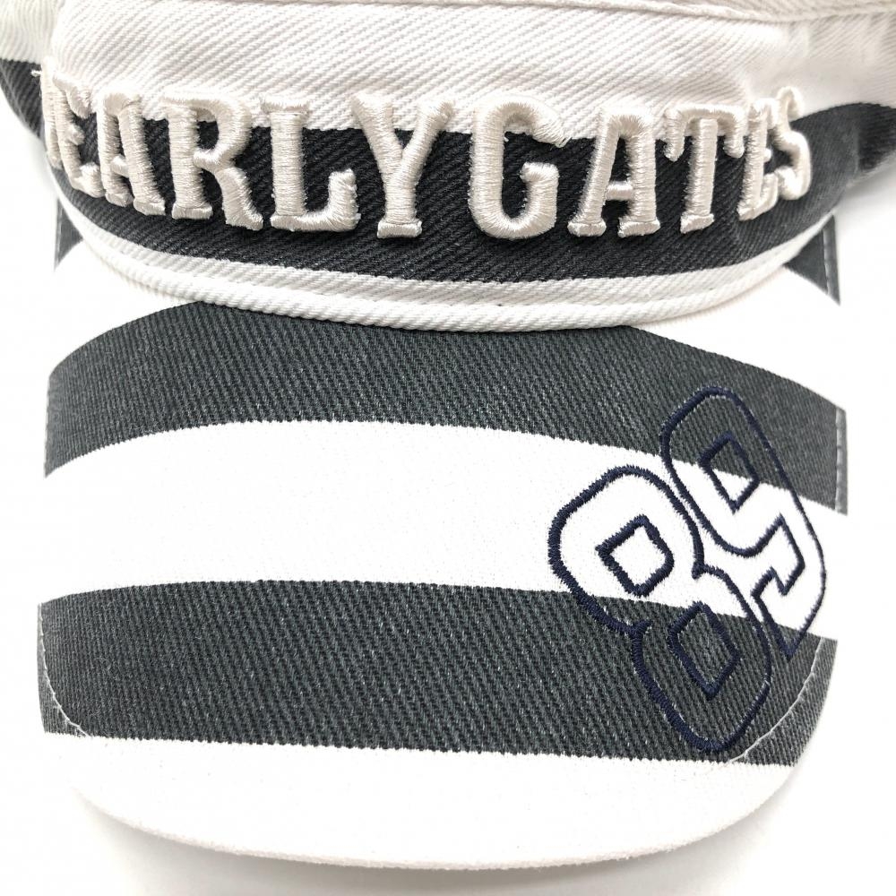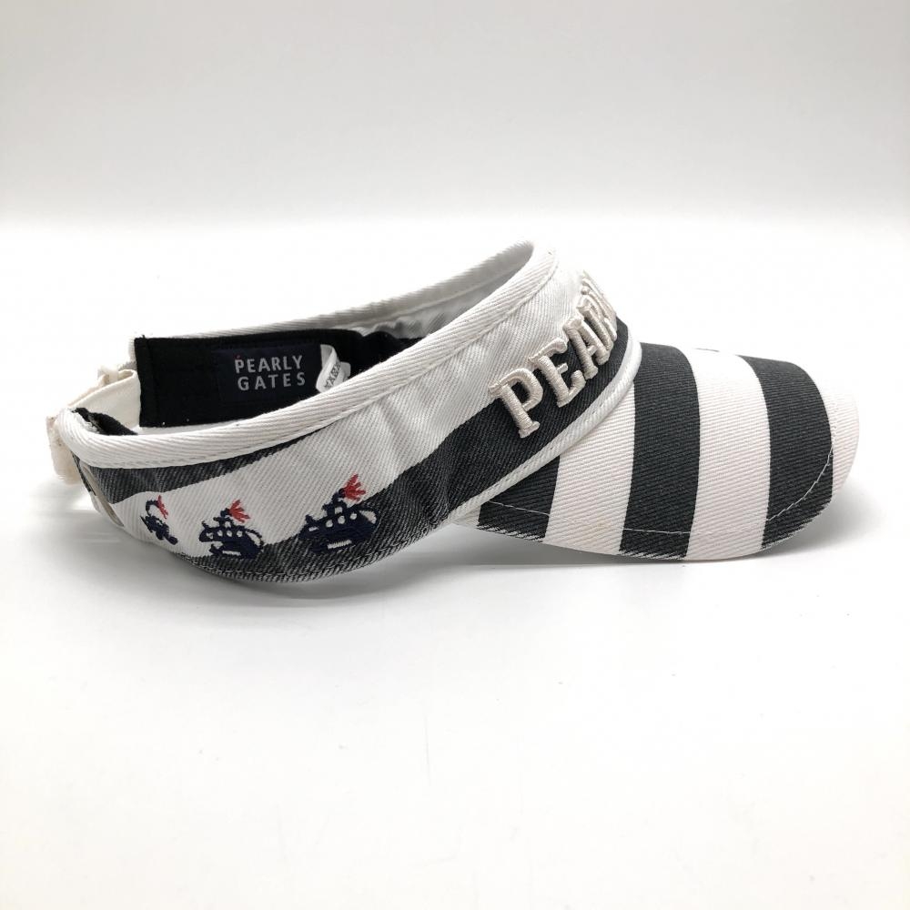 パーリーゲイツ サンバイザー 白×グレー ボーダー ロゴ刺しゅう FREE ゴルフウェア PEARLY GATES