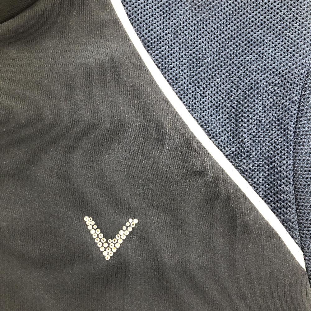 【新品】キャロウェイ レッドレーベル 半袖ハイネックシャツ ネイビー×ライトグレー 袖メッシュ切替 レディース M ゴルフウェア Callaway