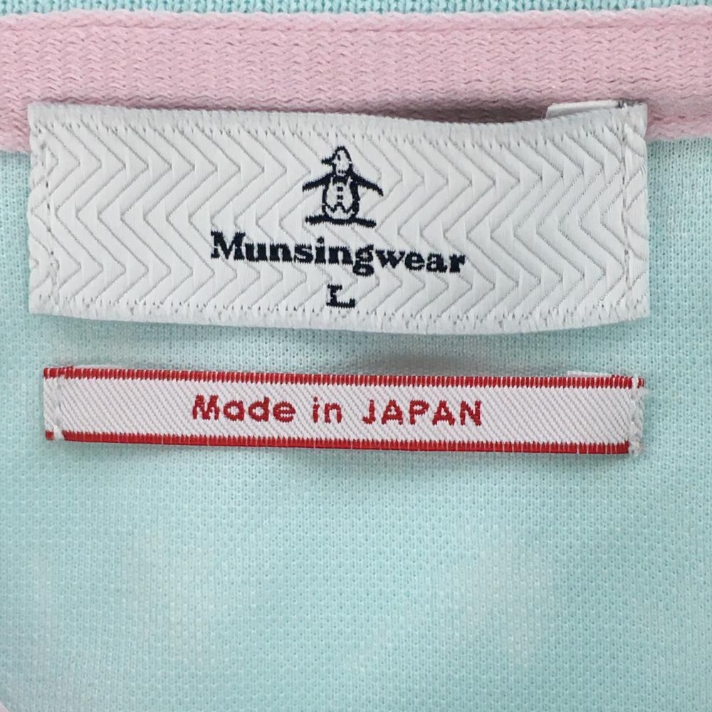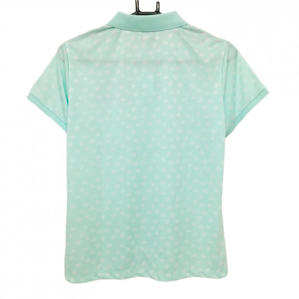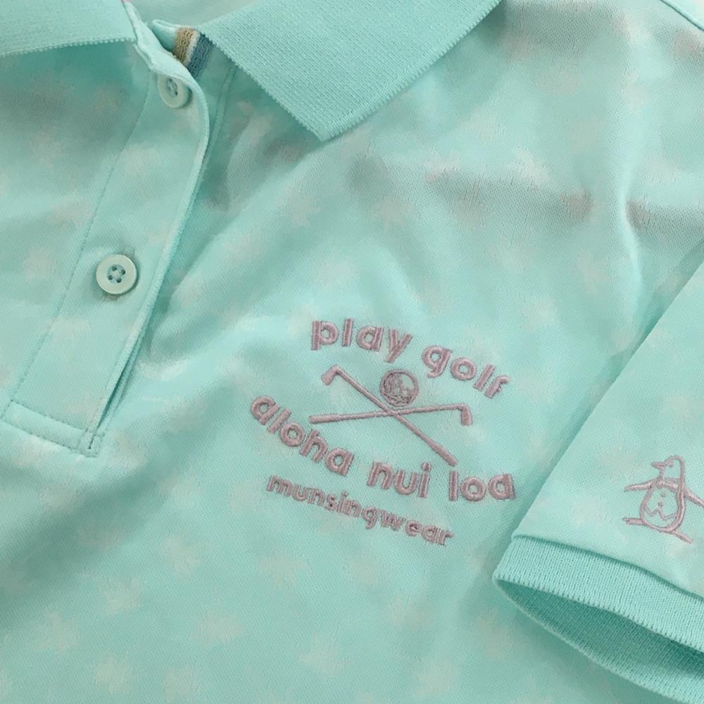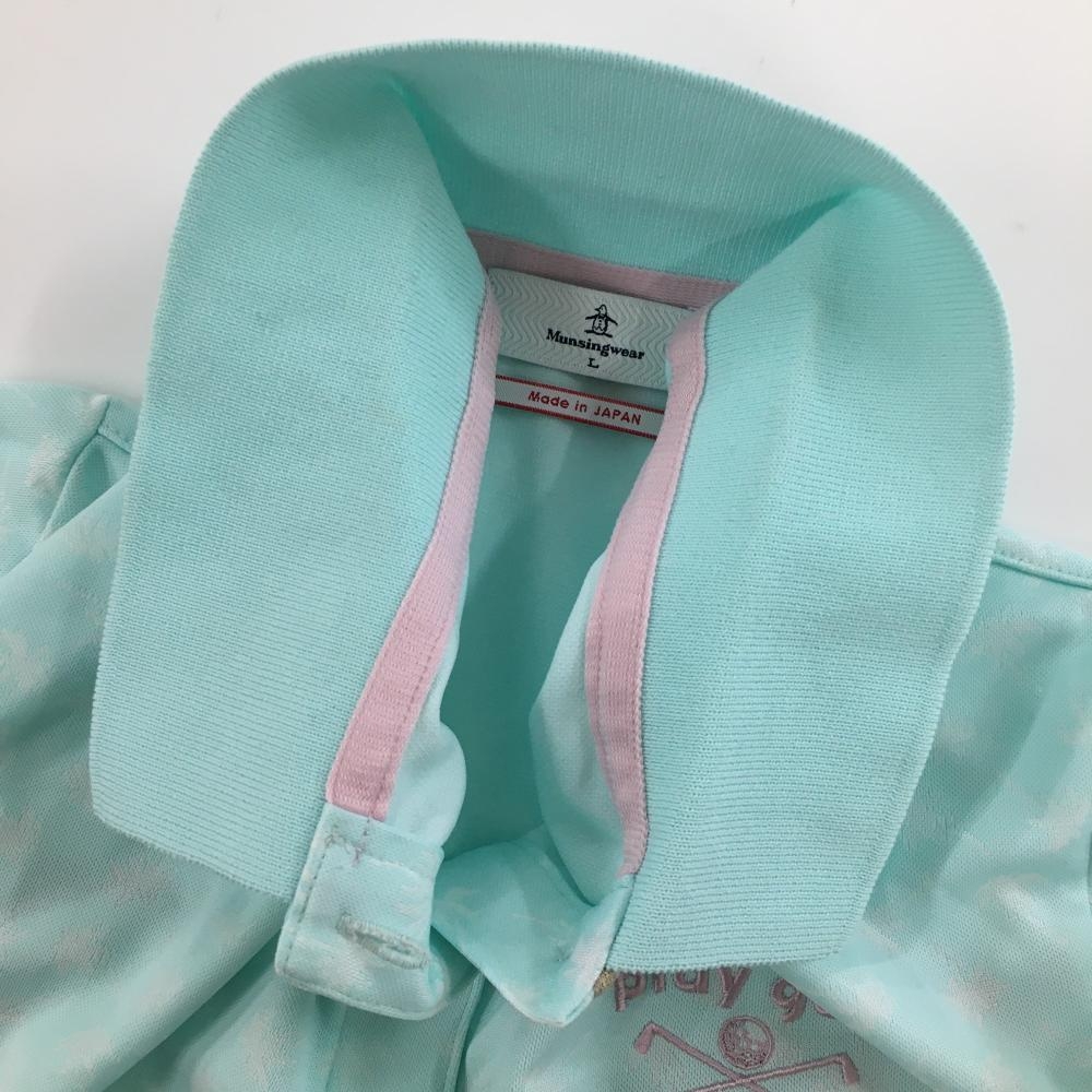 マンシングウェア 半袖ポロシャツ ライトブルー×白 ヤシの木柄 ロゴ刺しゅう レディース L ゴルフウェア Munsingwear