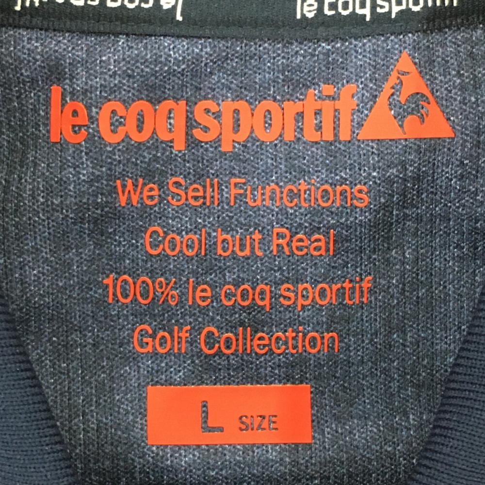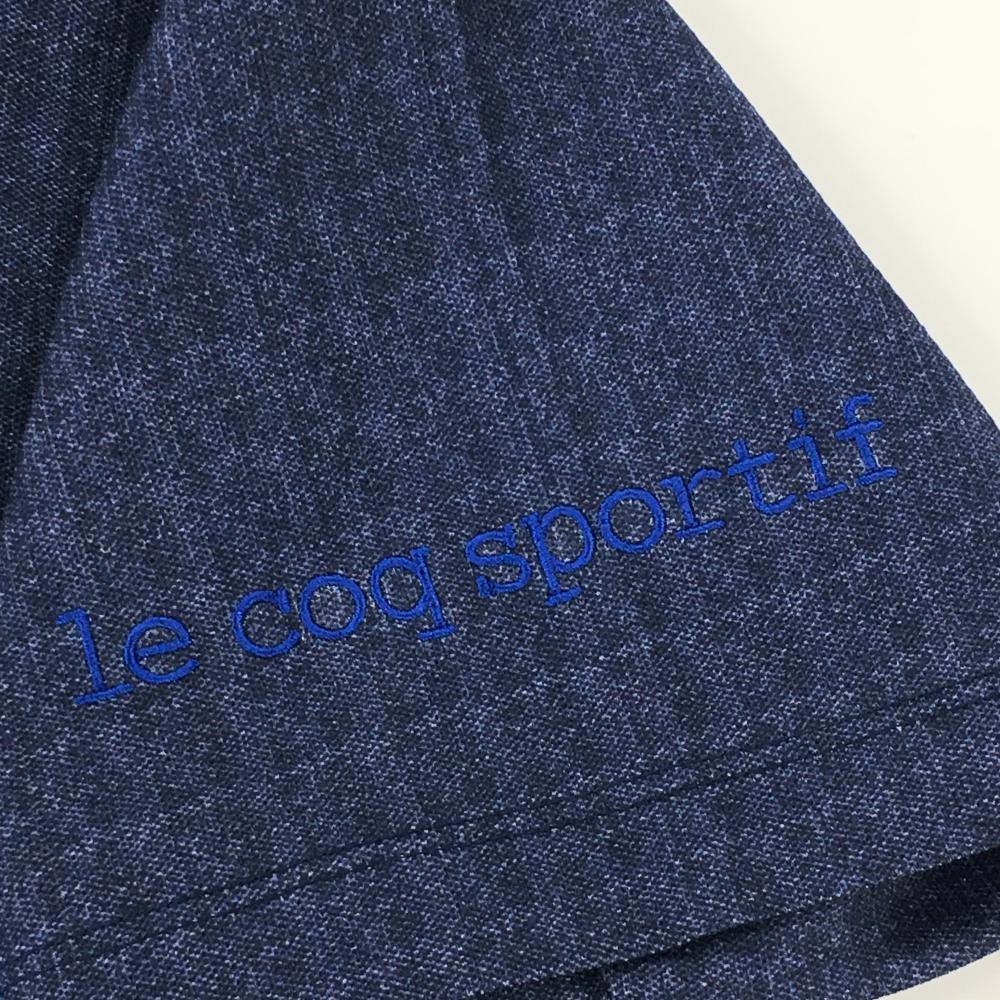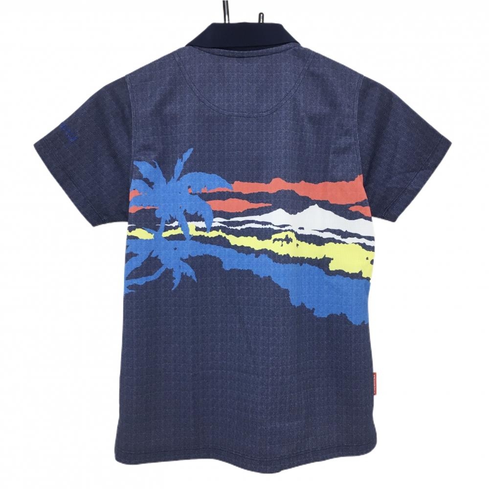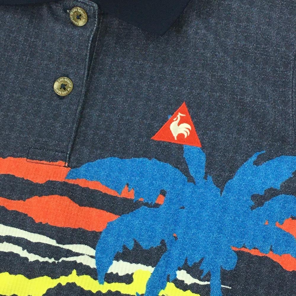 【超美品】ルコックゴルフ 半袖ポロシャツ 杢ネイビー×マルチカラー ヤシの木 ロゴ刺しゅう レディース L ゴルフウェア le coq sportif