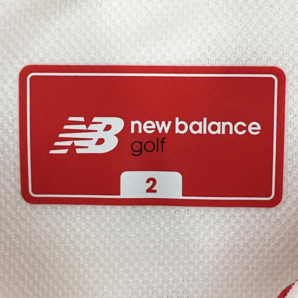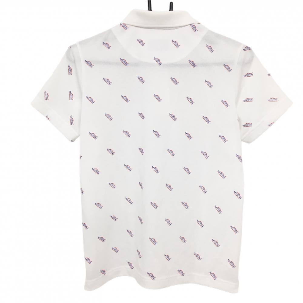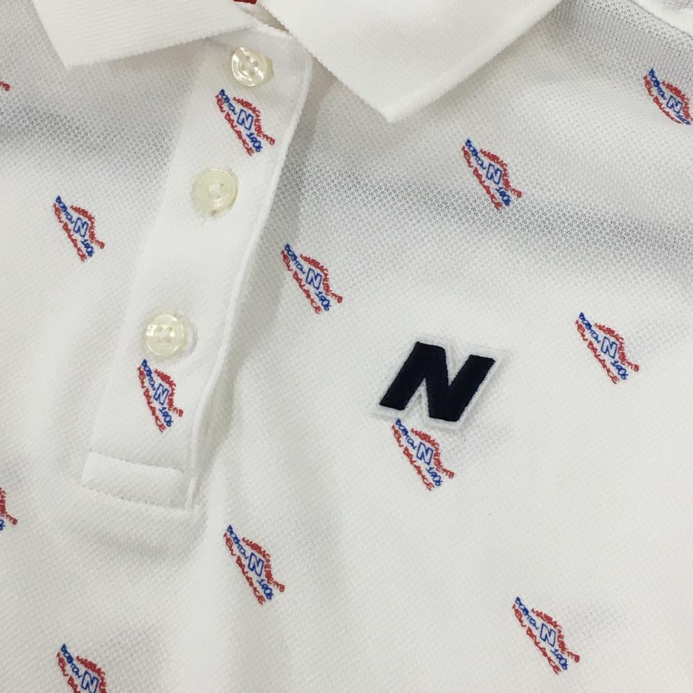 【超美品】ニューバランスゴルフ 半袖ポロシャツ 白×レッド 総柄 スニーカー 胸元ワッペン レディース 2(L) ゴルフウェア New Balance