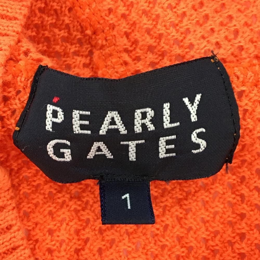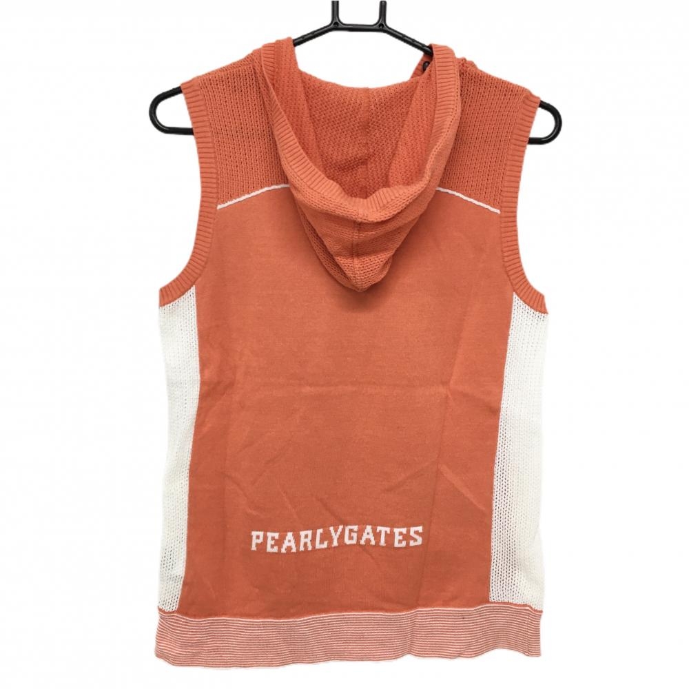 パーリーゲイツ ニットベスト オレンジ×白 フード付 一部メッシュ レディース 1(M) ゴルフウェア PEARLY GATES
