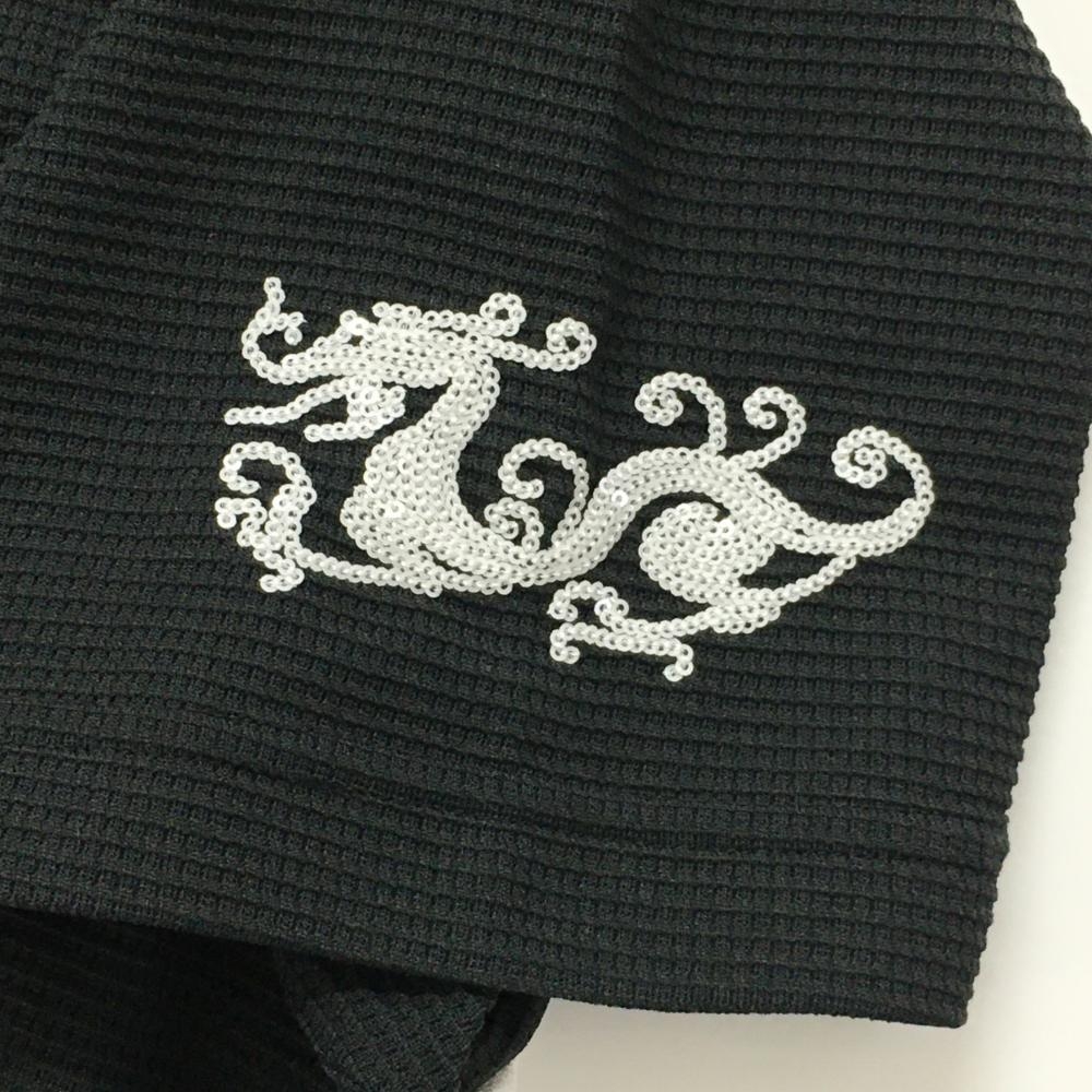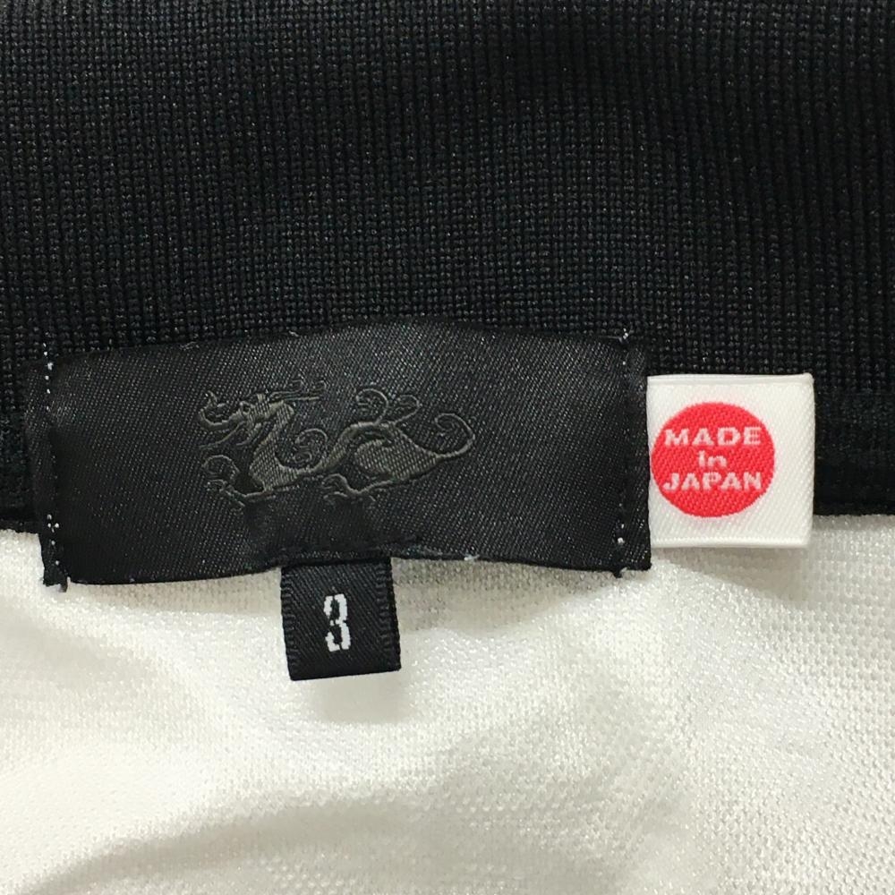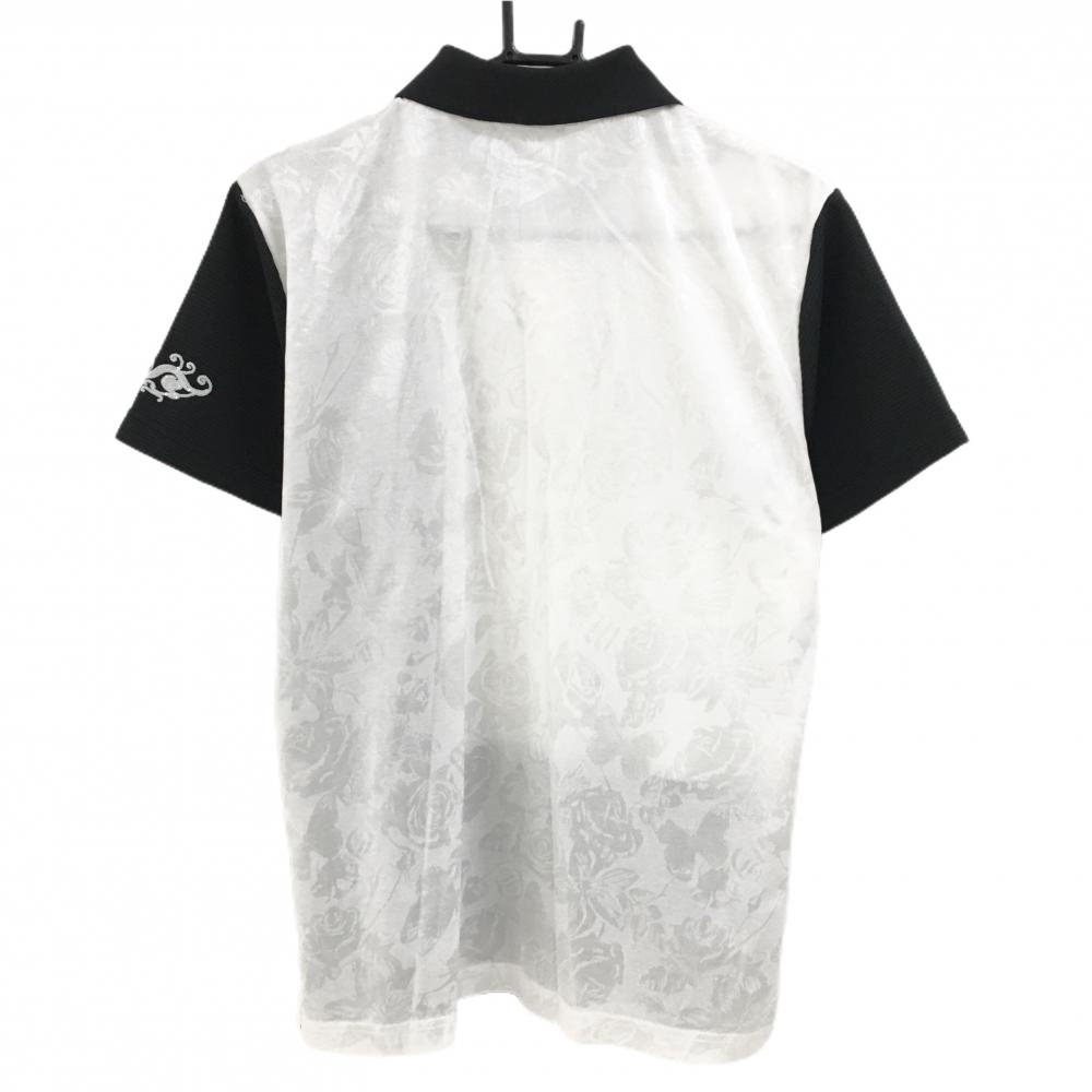 【美品】ダンスウィズドラゴン 半袖ポロシャツ 黒×白 切替 一部花柄地模様 メンズ 3(L) ゴルフウェア Dance With Dragon