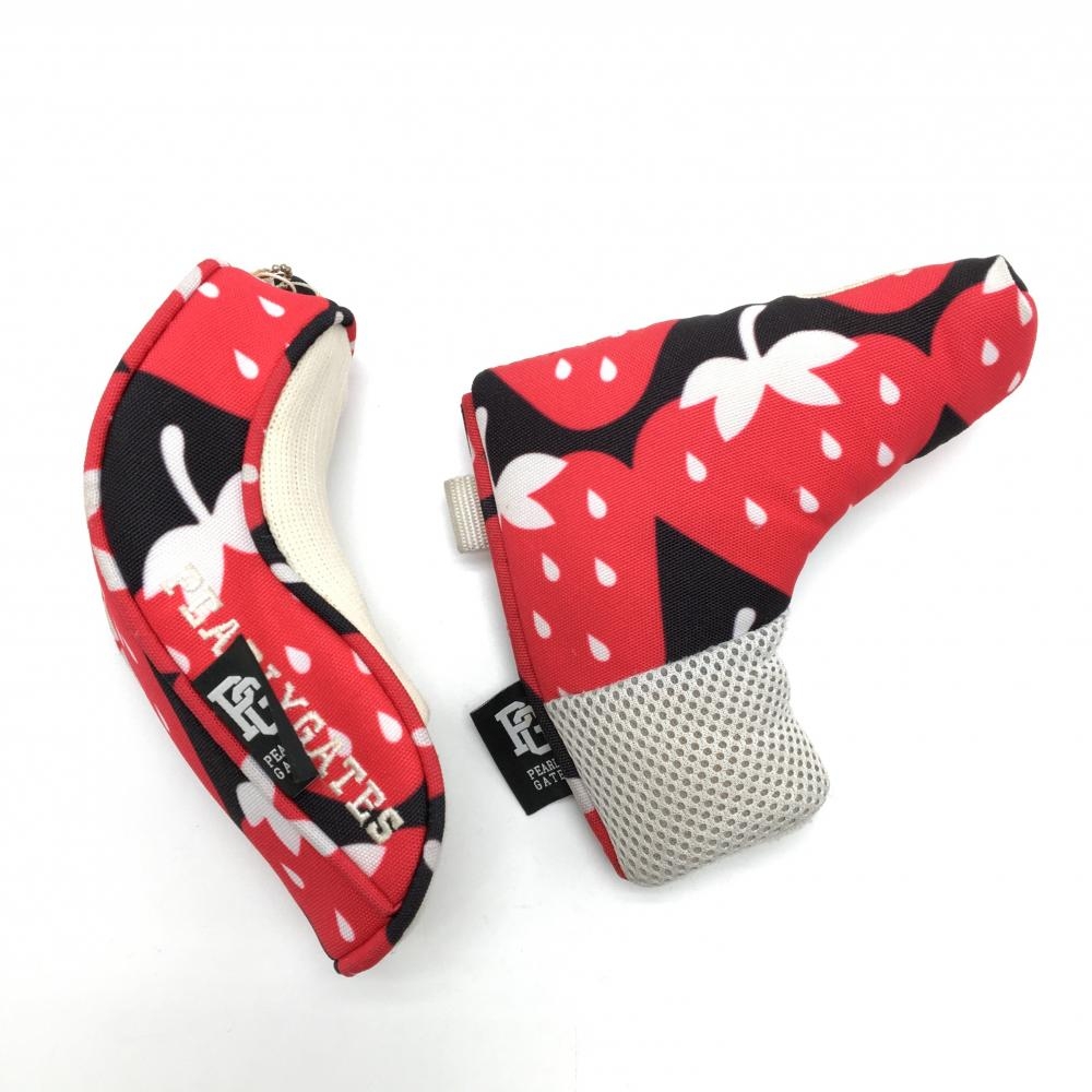 パーリーゲイツ ヘッドカバー2点セット(FW パター) レッド×白 いちご柄ゴルフ PEARLY GATES