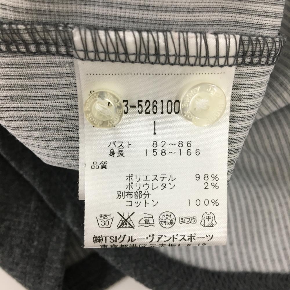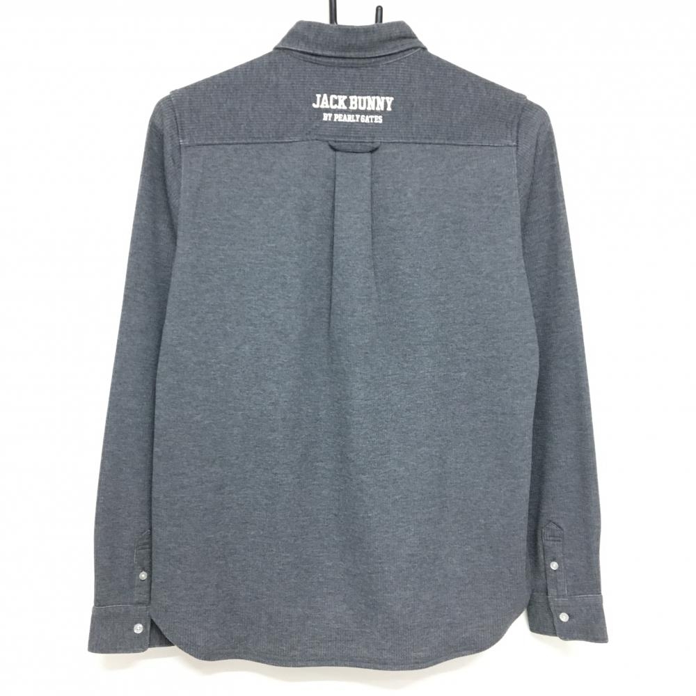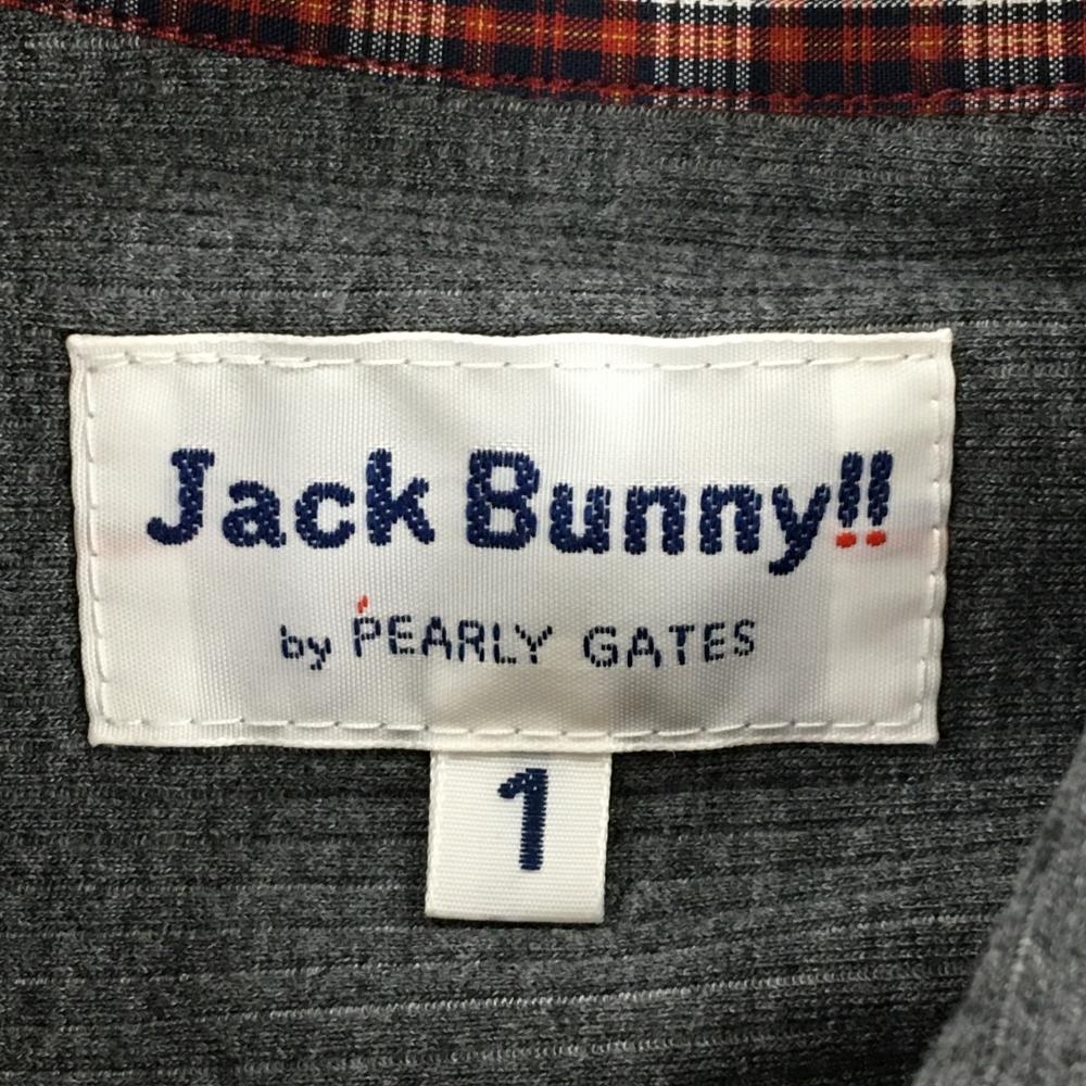 【超美品】ジャックバニー 長袖シャツ グレー 一部チェック リブ調 ボタンダウン レディース 1(M) ゴルフウェア Jack Bunny